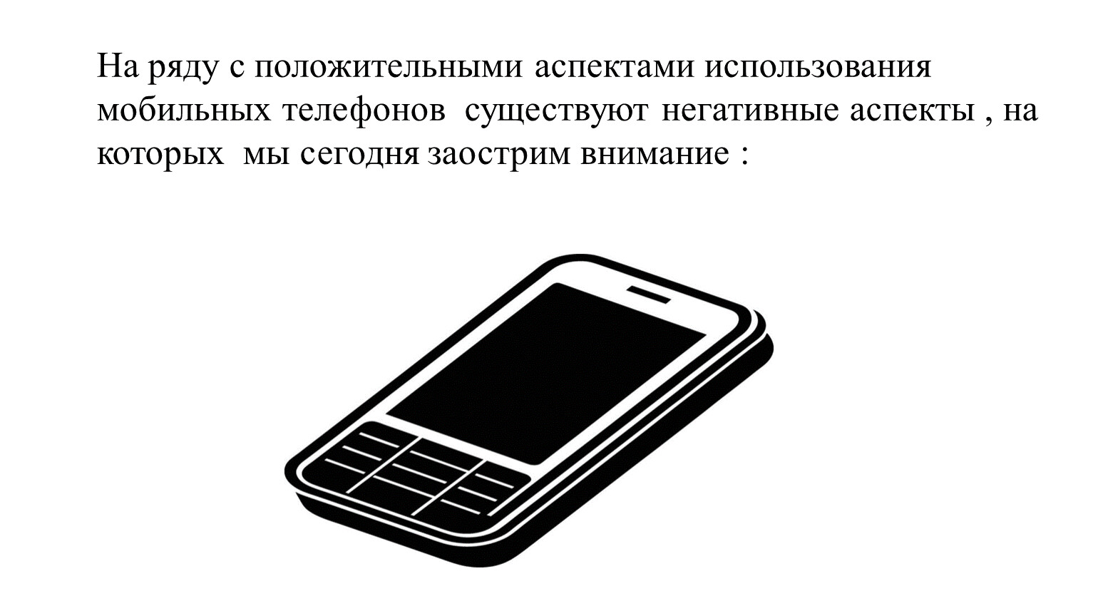 На ряду с положительными аспектами использования мобильных телефонов существуют негативные аспекты , на которых мы сегодня заострим внимание :