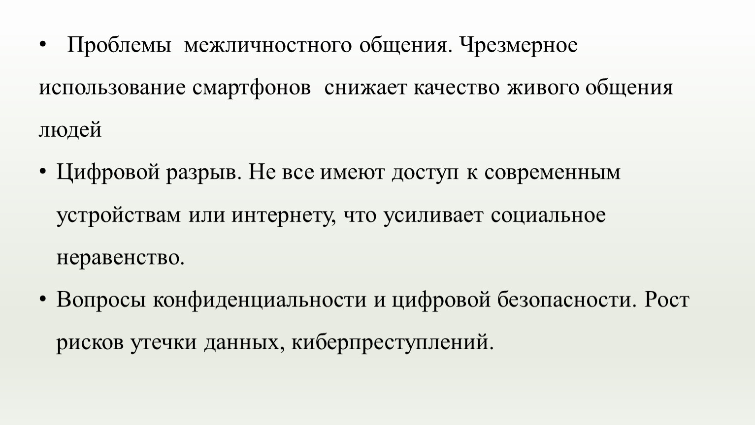Цифровой разрыв. Не все имеют доступ к современным устройствам или интернету, что усиливает социальное неравенство.