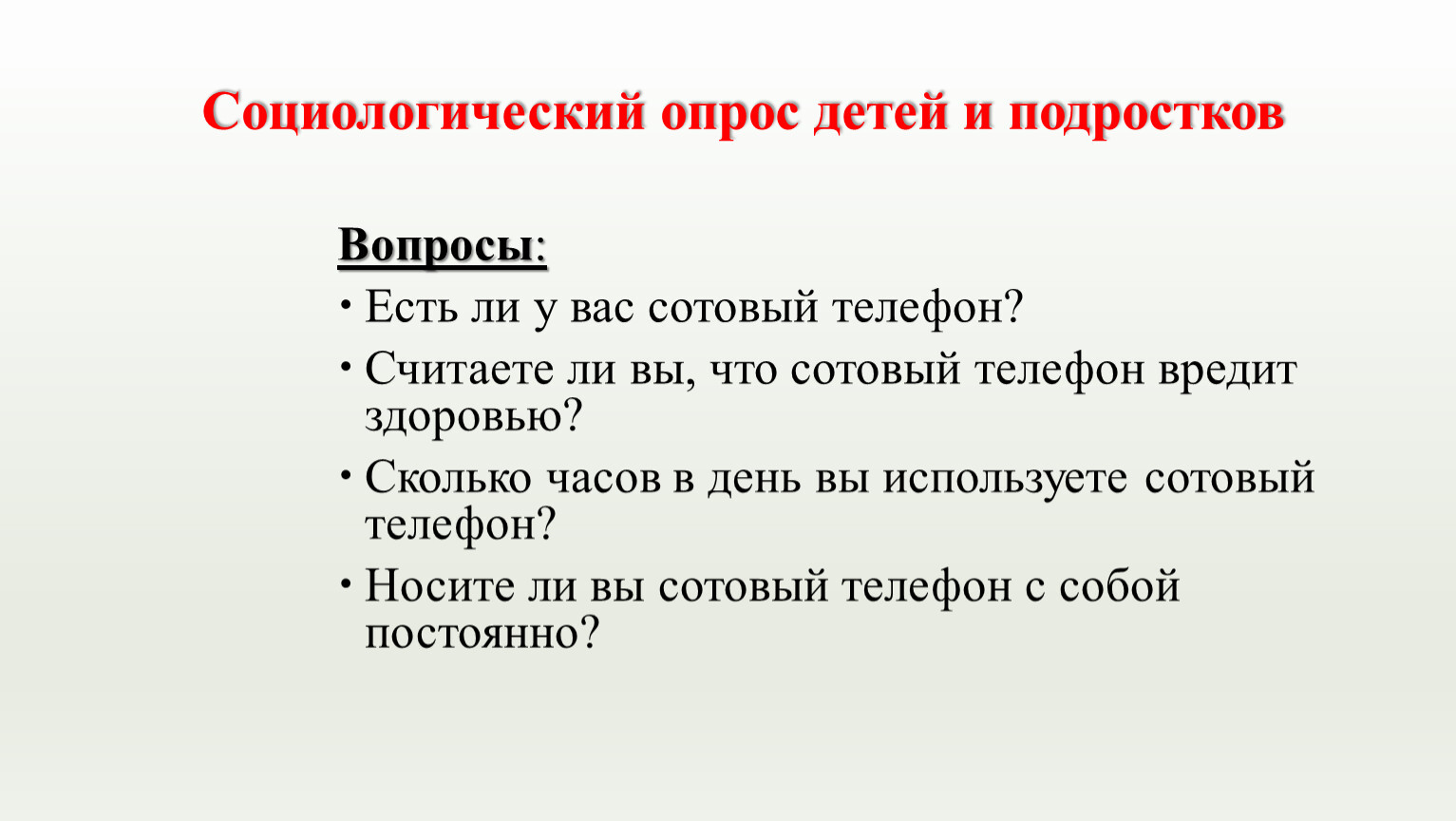 Социологический опрос детей и подростков