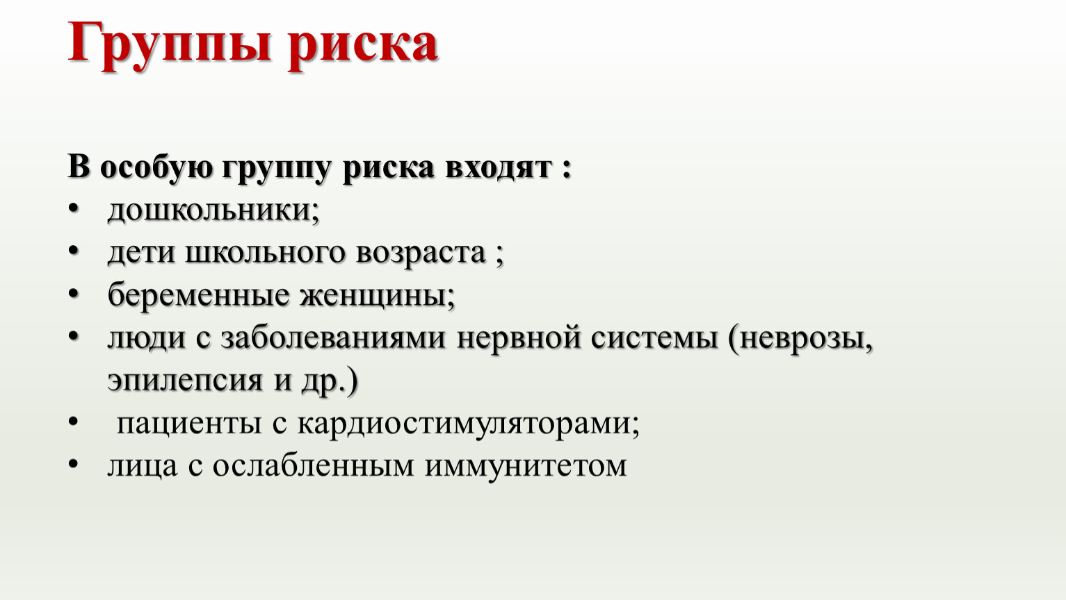 В особую группу риска входят :