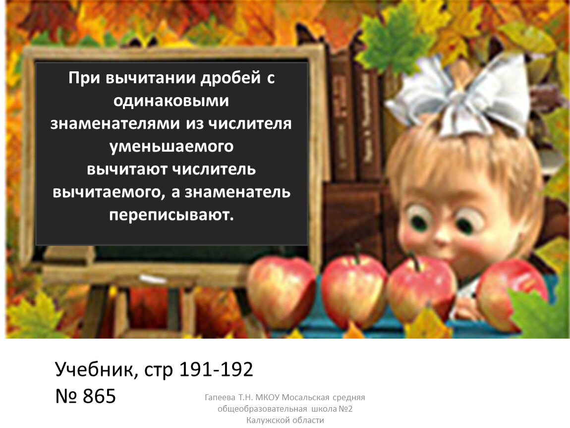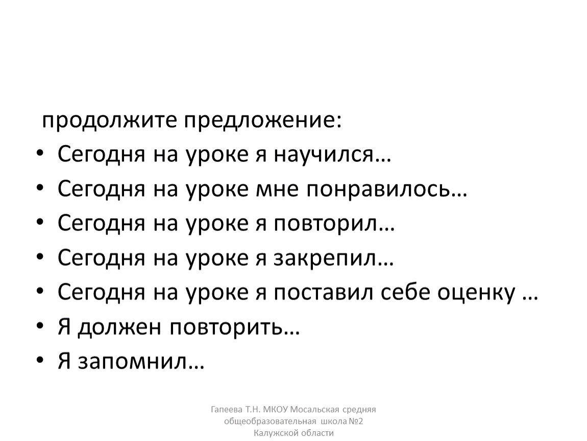 Гапеева Т.Н. МКОУ Мосальская средняя общеобразовательная школа №2 Калужской области