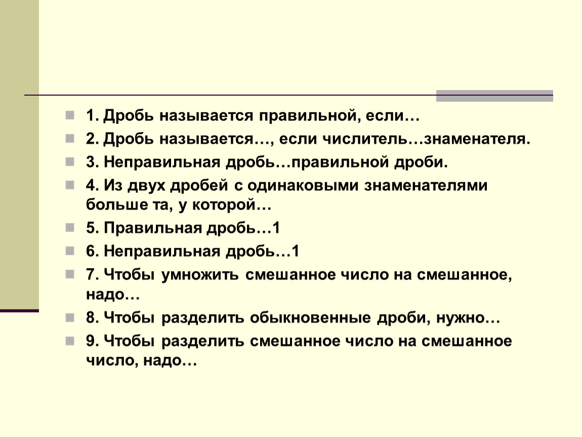 9. Чтобы разделить смешанное число на смешанное число, надо…
