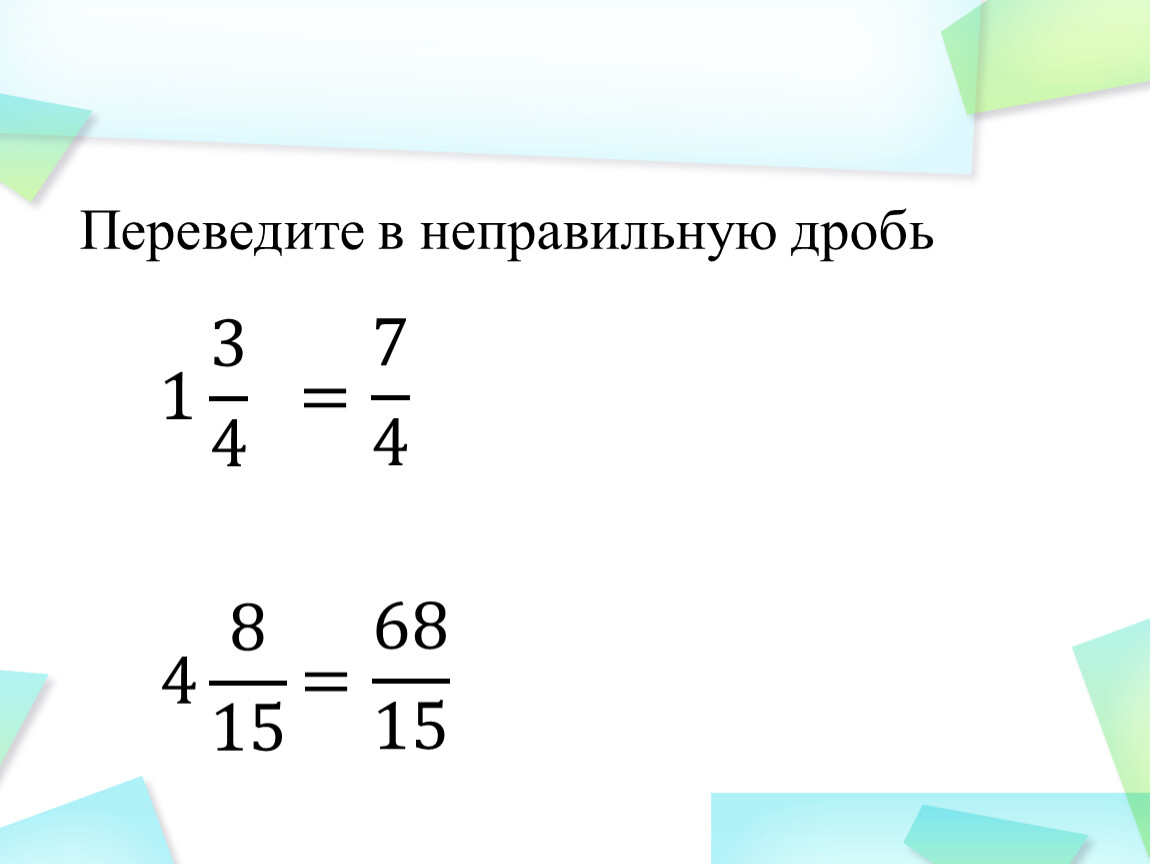 Переведите в неправильную дробь