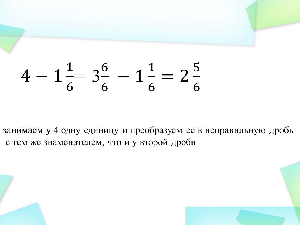 занимаем у 4 одну единицу и преобразуем ее в неправильную дробь
