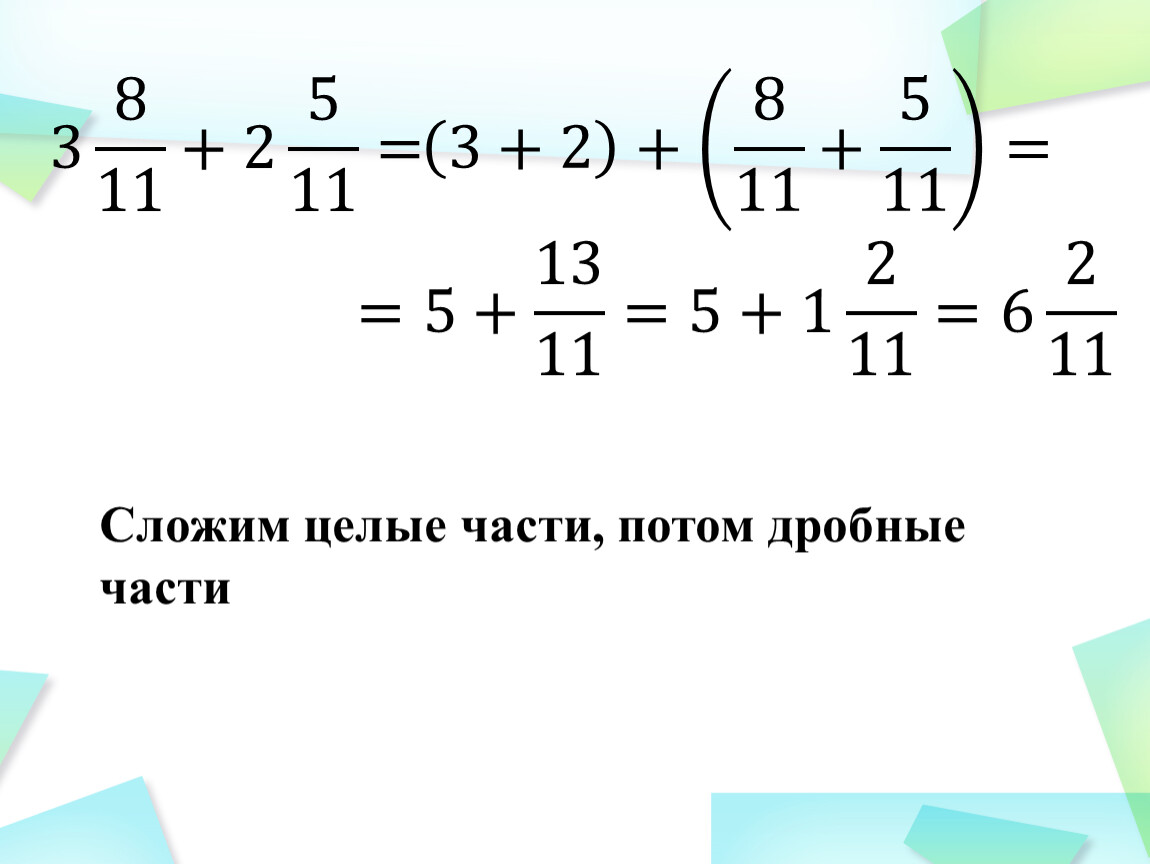 Сложим целые части, потом дробные части