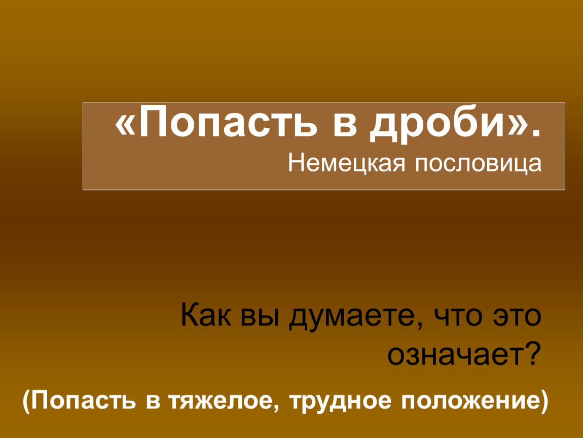 «Попасть в дроби». Немецкая пословицаКак вы думаете, что это означает?
