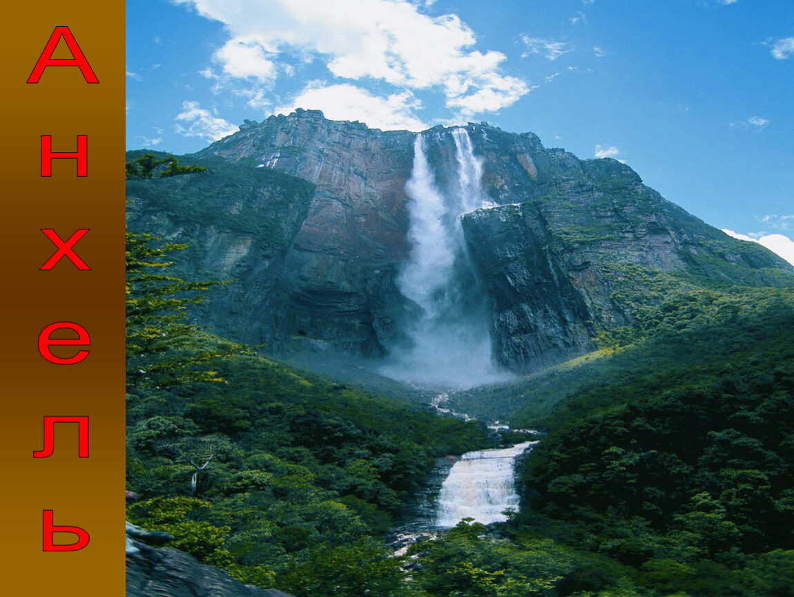 Водопад АНХЕЛЬ, его высота 1054 м. Находится он в Южной Америке. Высота падения воды здесь настолько велика, что поток, не достигая дна пропасти, обращается в водяную пыль, которая оседает на камни дождем.