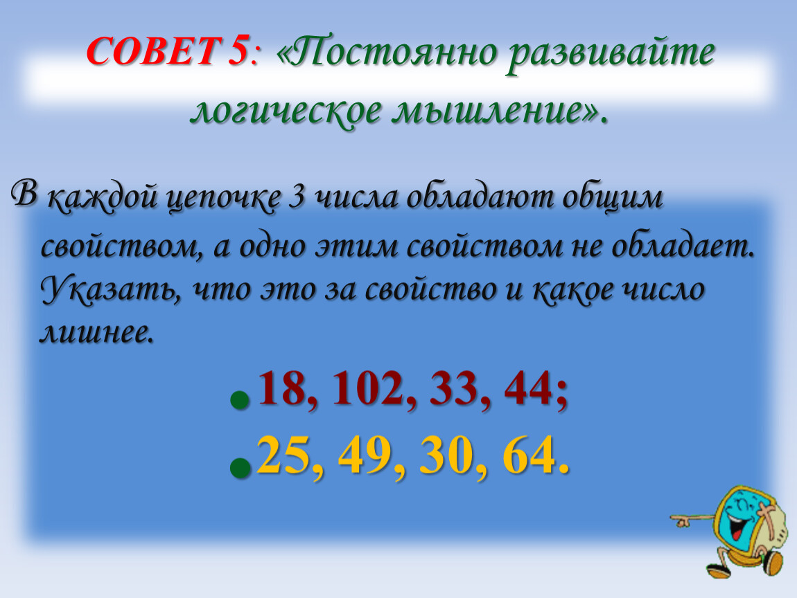 СОВЕТ 5: «Постоянно развивайте логическое мышление».