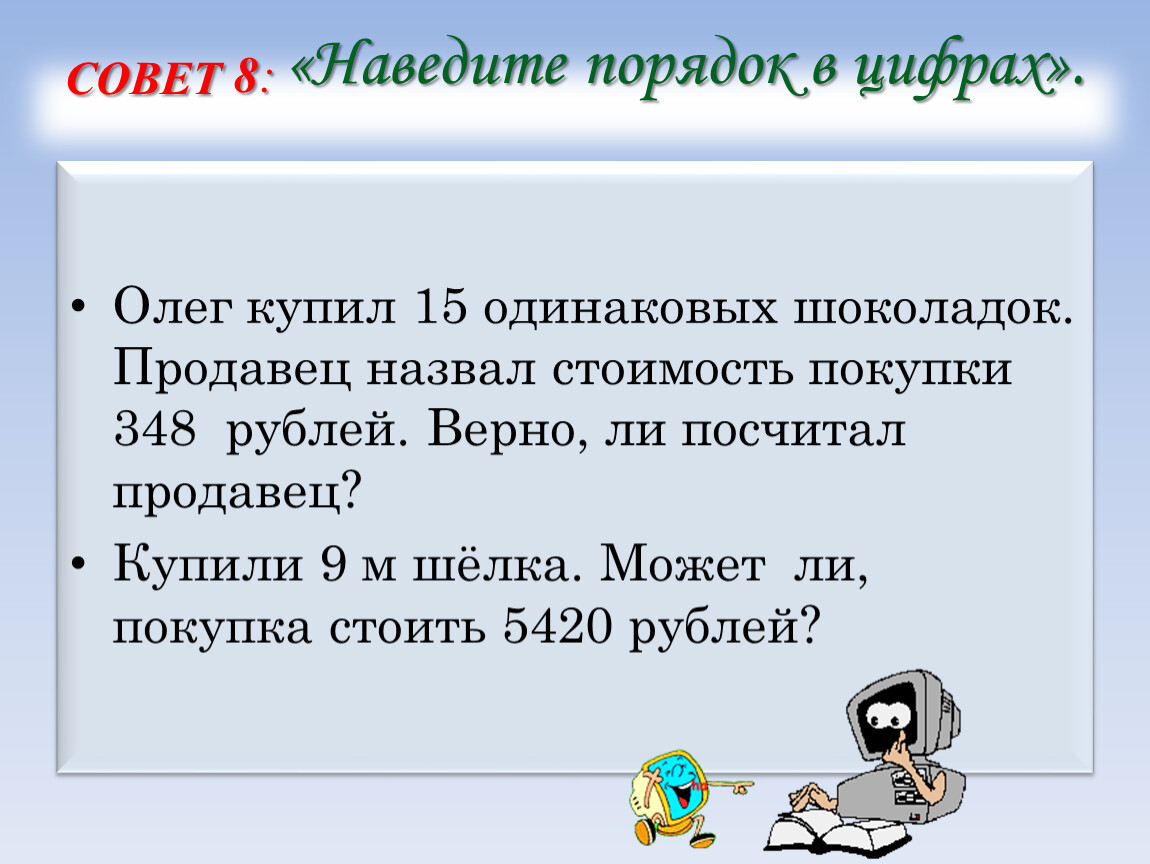 СОВЕТ 8: «Наведите порядок в цифрах».