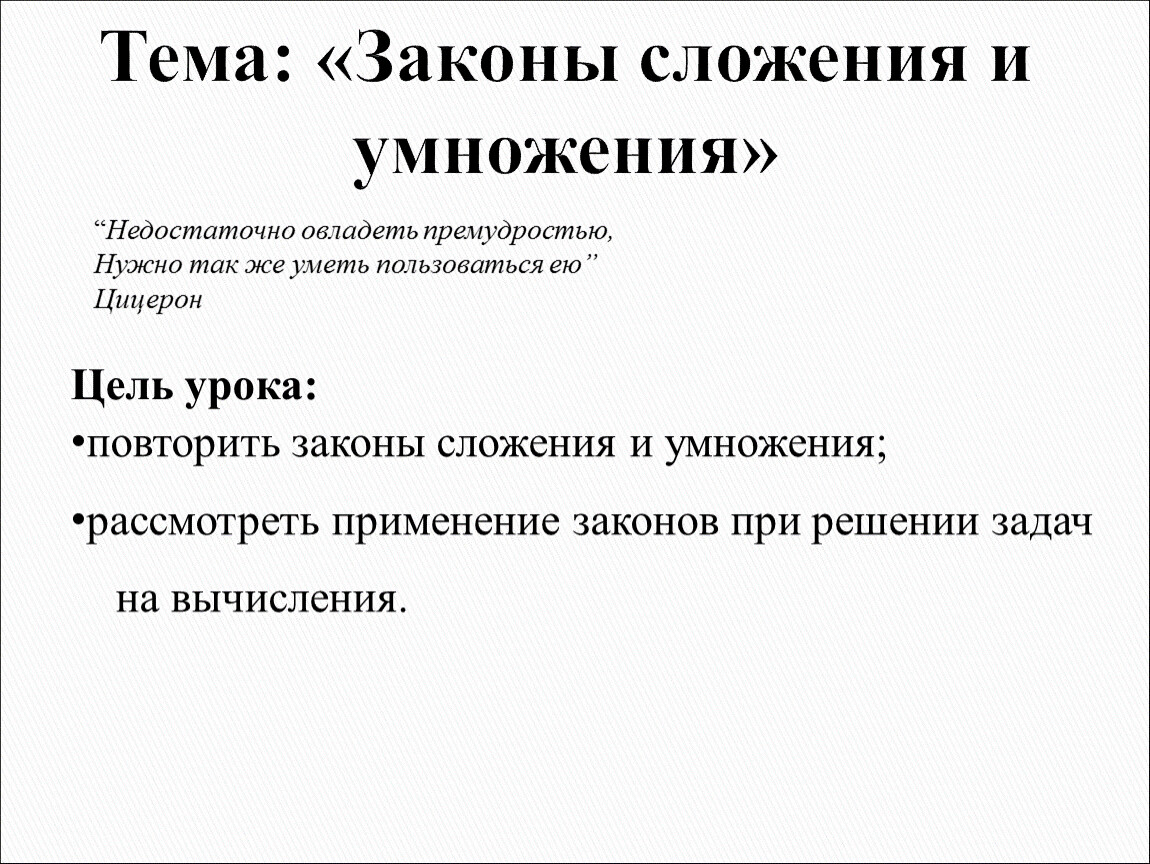 “Недостаточно овладеть премудростью,Нужно так же уметь пользоваться ею”Цицерон