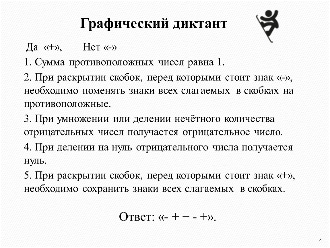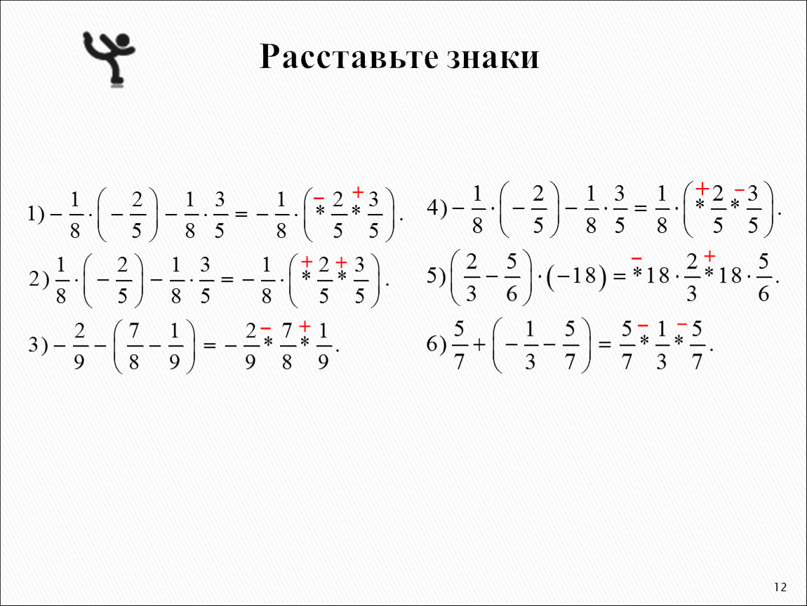 3. При умножении или делении нечётного количества отрицательных чисел получается отрицательное число.