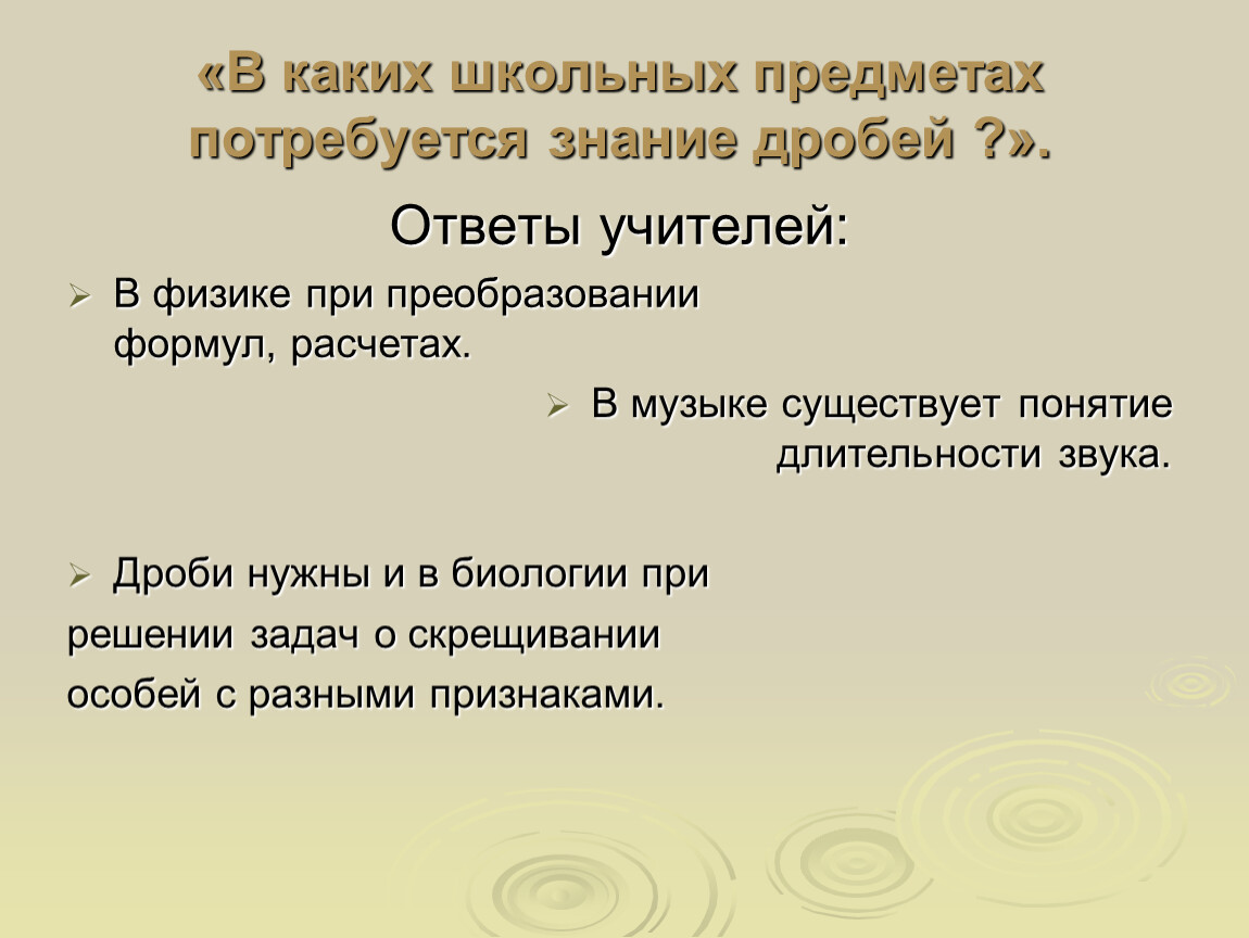 «В каких школьных предметах потребуется знание дробей ?».