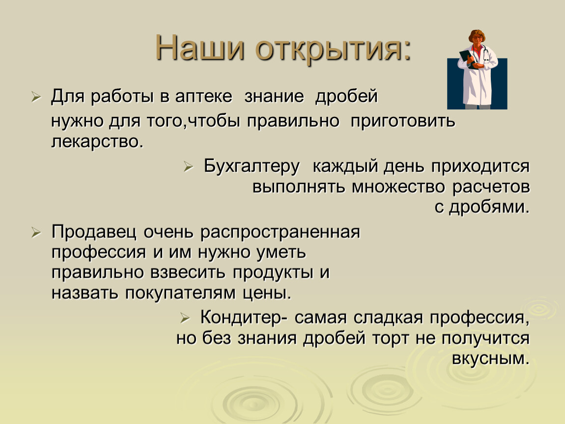 Для работы в аптеке знание дробей