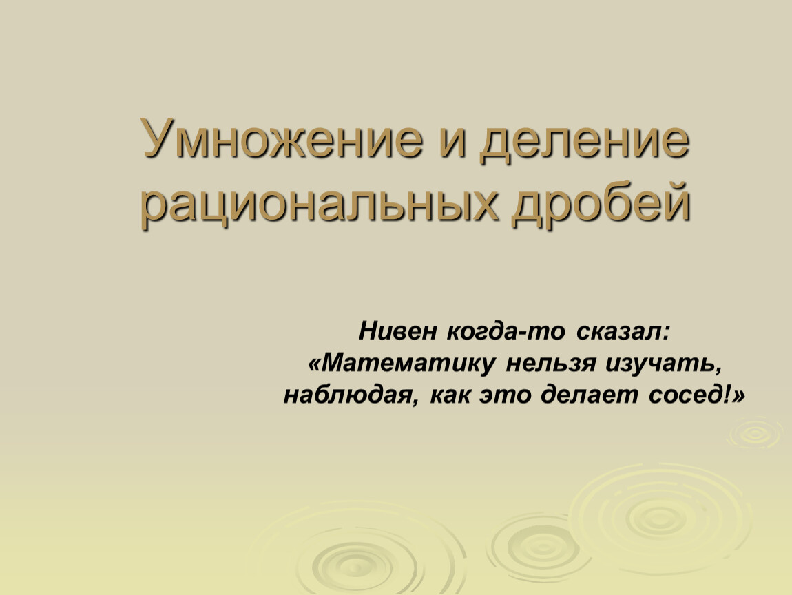 Нивен когда-то сказал: «Математику нельзя изучать, наблюдая, как это делает сосед!»