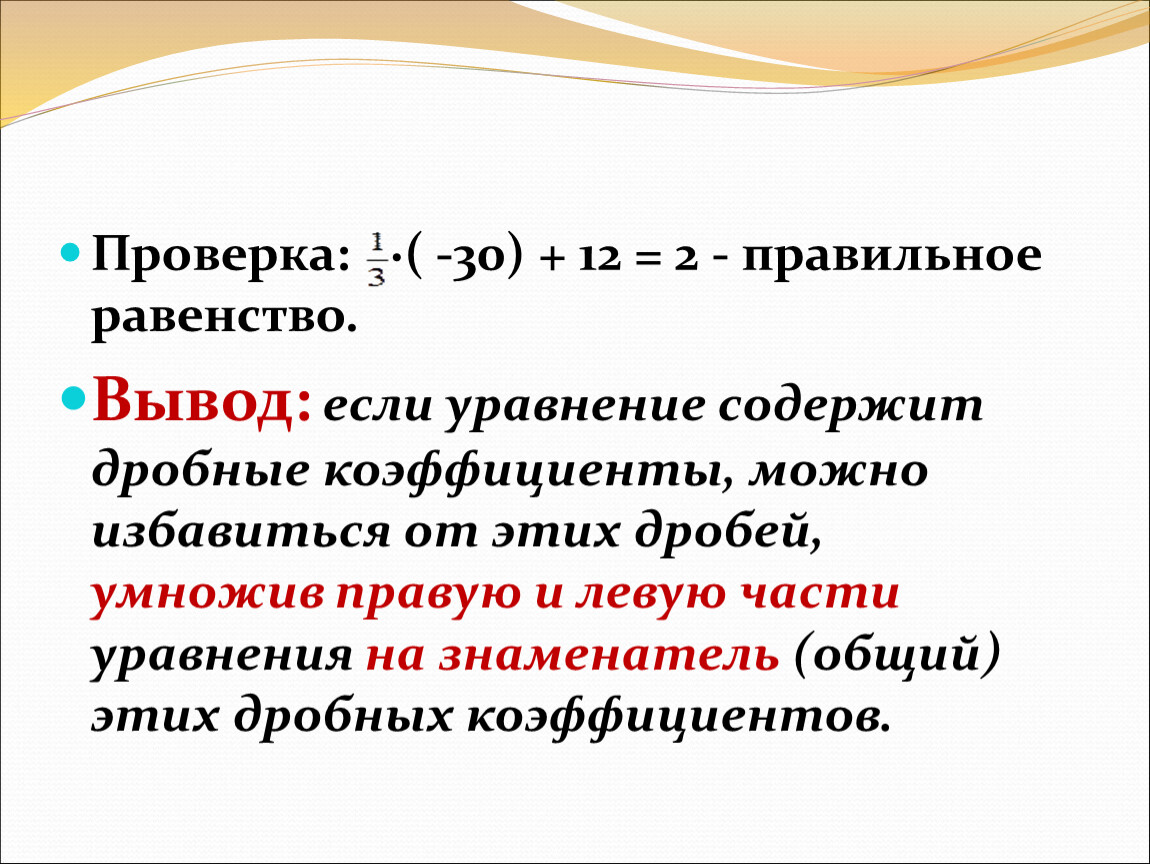 Проверка: ·( -30) + 12 = 2 - правильное равенство.