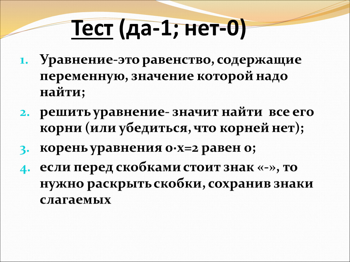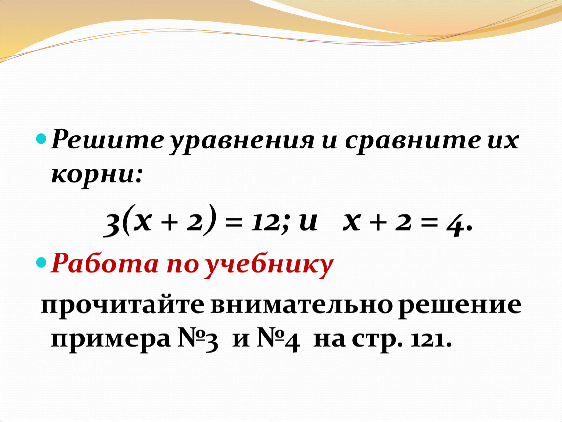 решить уравнение- значит найти все его корни (или убедиться, что корней нет); 1