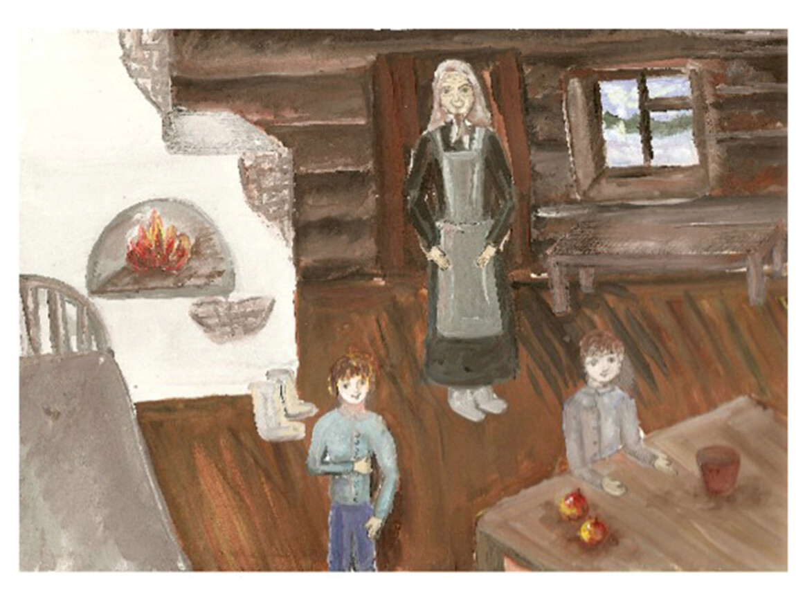 — Не бегайте в одном ботинке — это нехорошая примета. Залезайте в постель — видите, какая холодина! — говорит бабушка, и изо рта у нее идет пар.