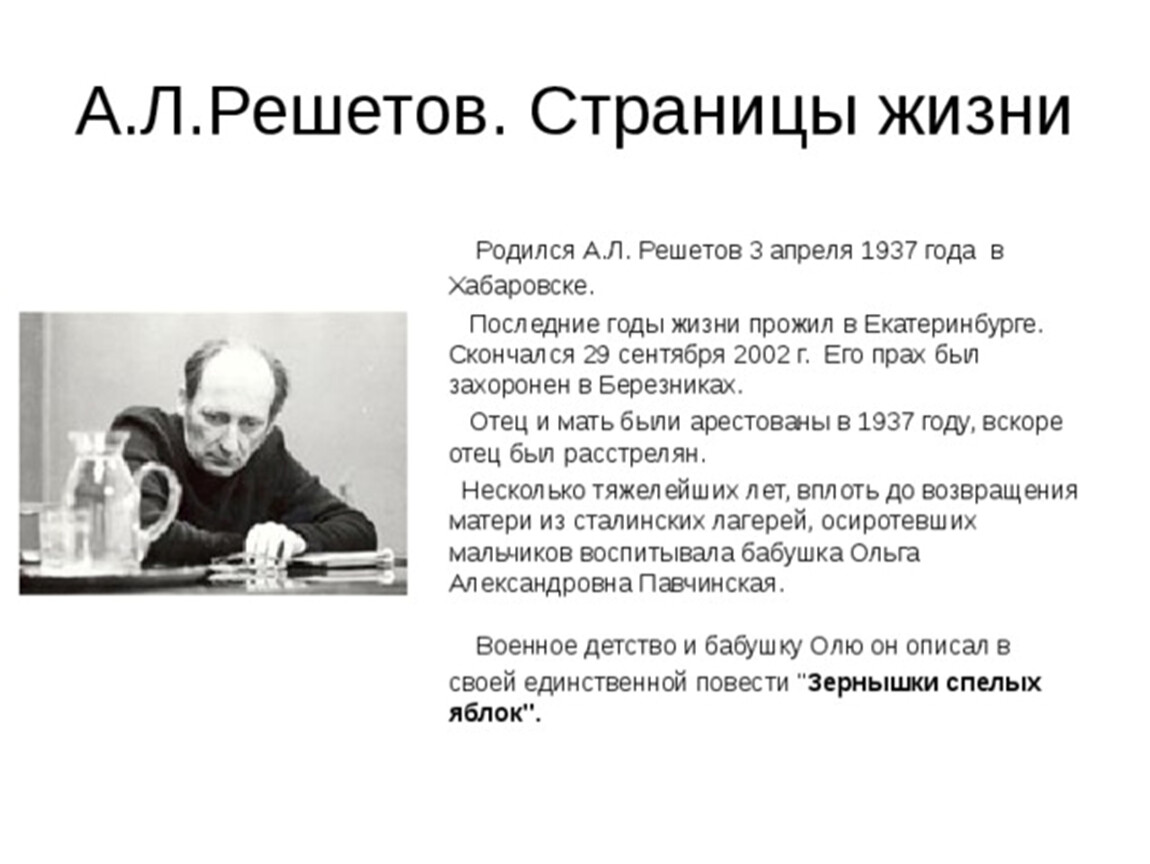 А. Л. Решетов. «Зернышки спелых яблок»