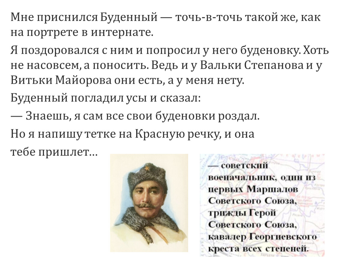 Мне приснился Буденный — точь-в-точь такой же, как на портрете в интернате.