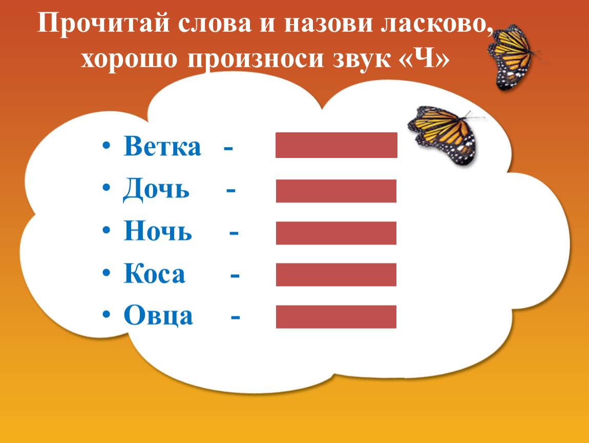 Прочитай слова и назови ласково, хорошо произноси звук «Ч»