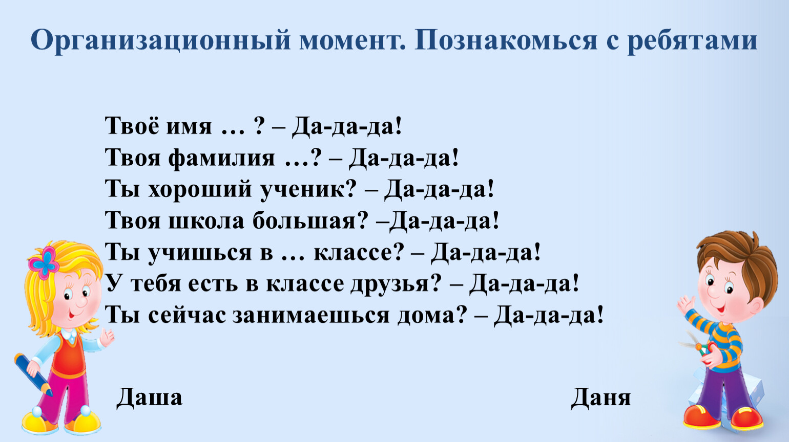 Твоё имя … ? – Да-да-да!