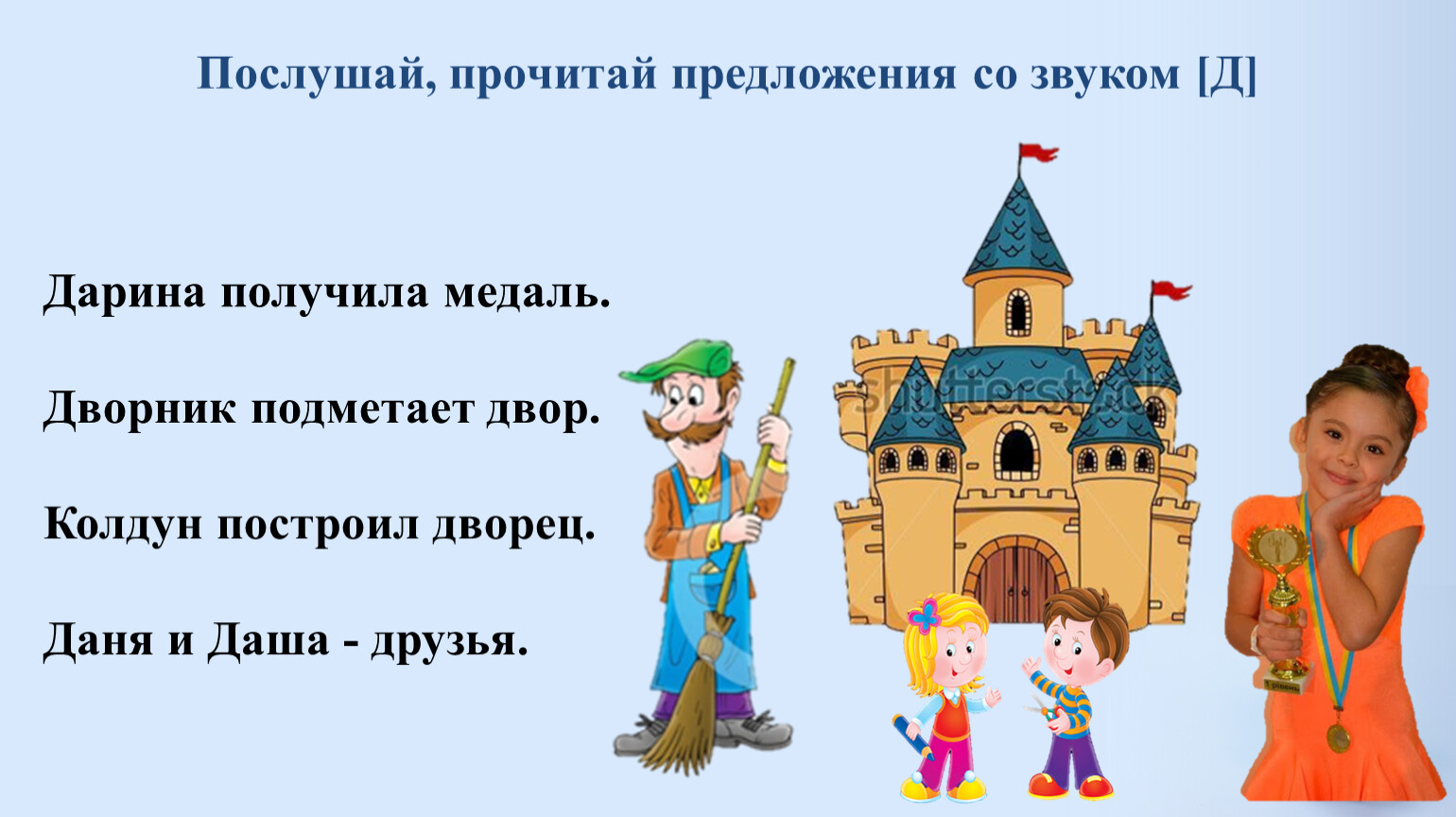 Послушай, прочитай предложения со звуком [Д]