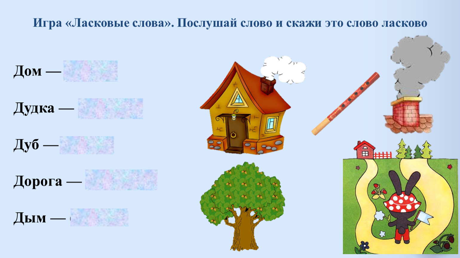 Игра «Ласковые слова». Послушай слово и скажи это слово ласково