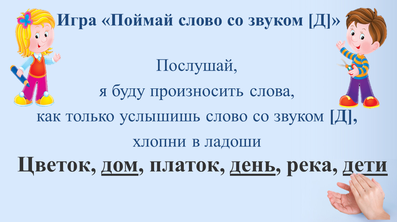 Игра «Поймай слово со звуком [Д]»