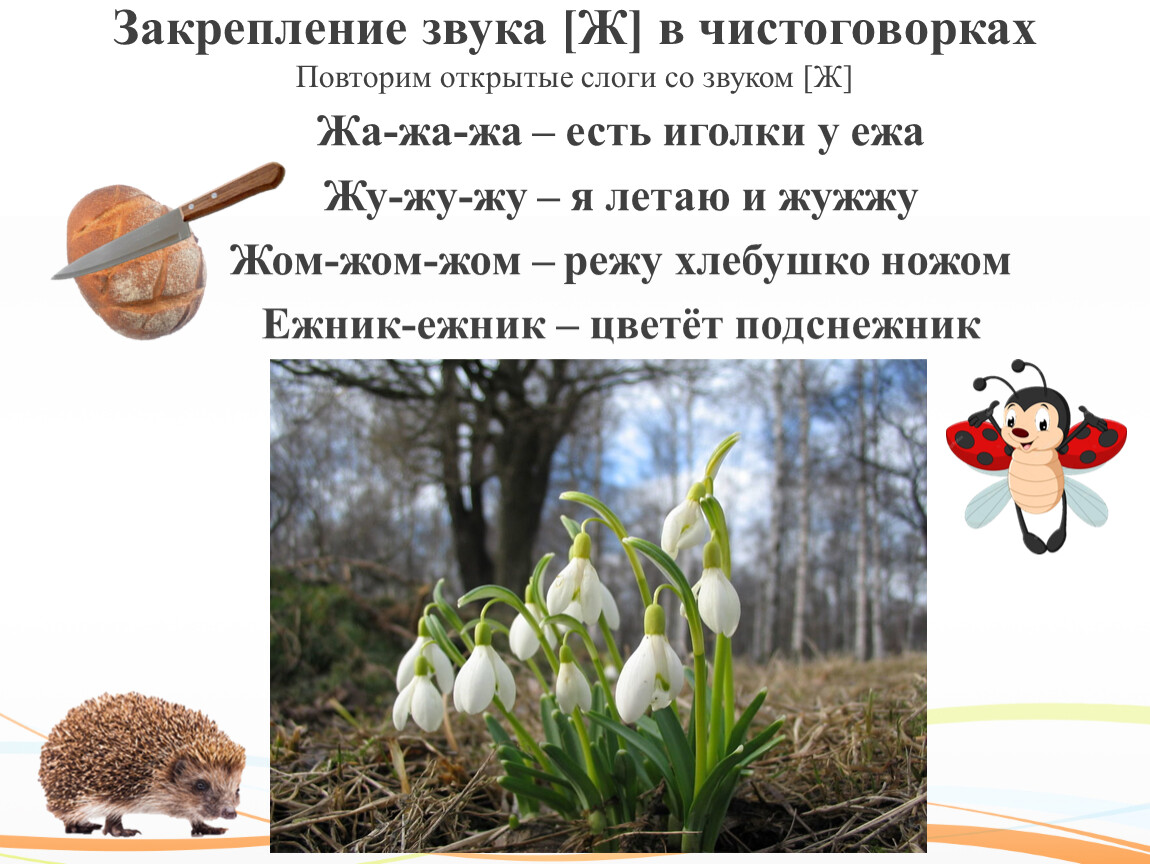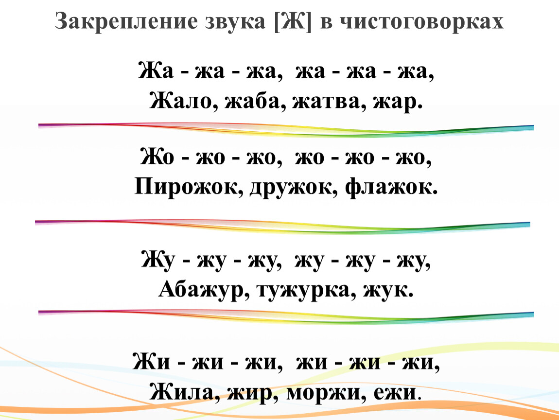Закрепление звука [Ж] в чистоговоркахПовторим открытые слоги со звуком [Ж]