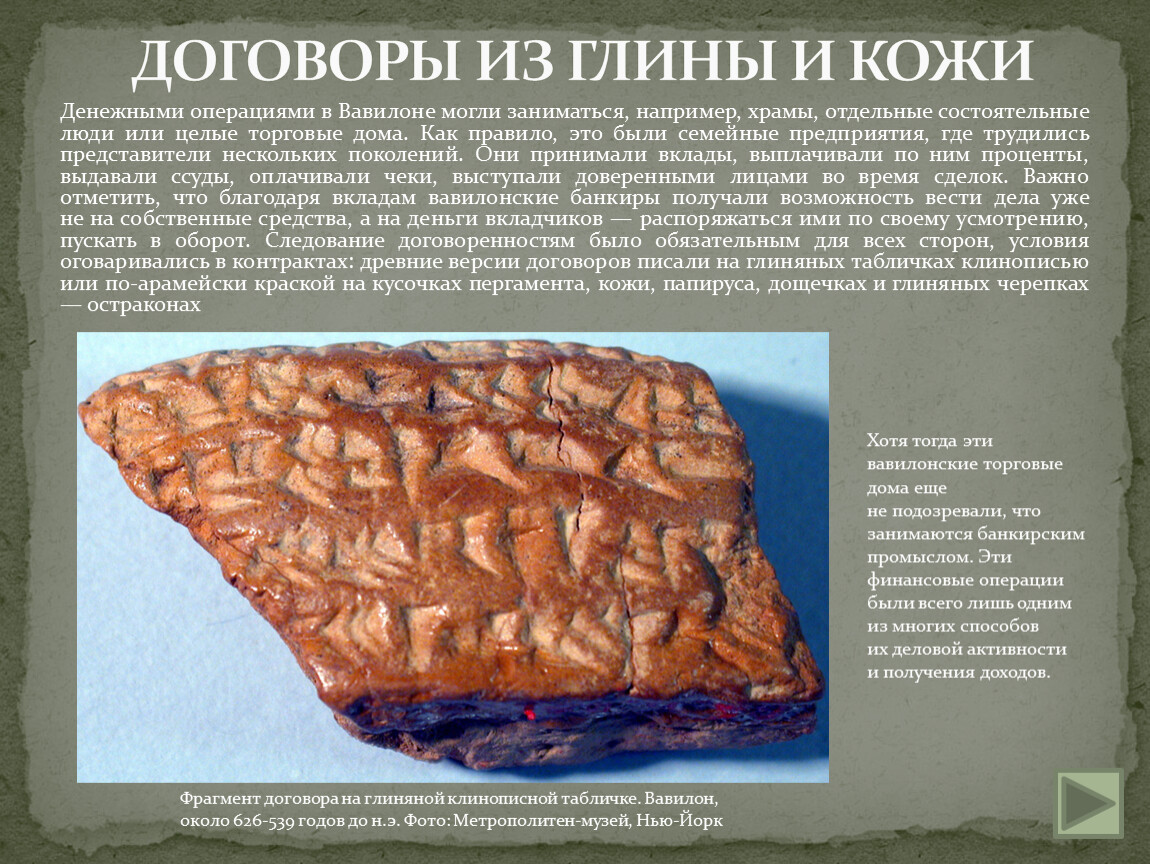 Хотя тогда эти вавилонские торговые дома еще не подозревали, что занимаются банкирским промыслом. Эти финансовые операции были всего лишь одним из многих способов их деловой активности и получения доходов.