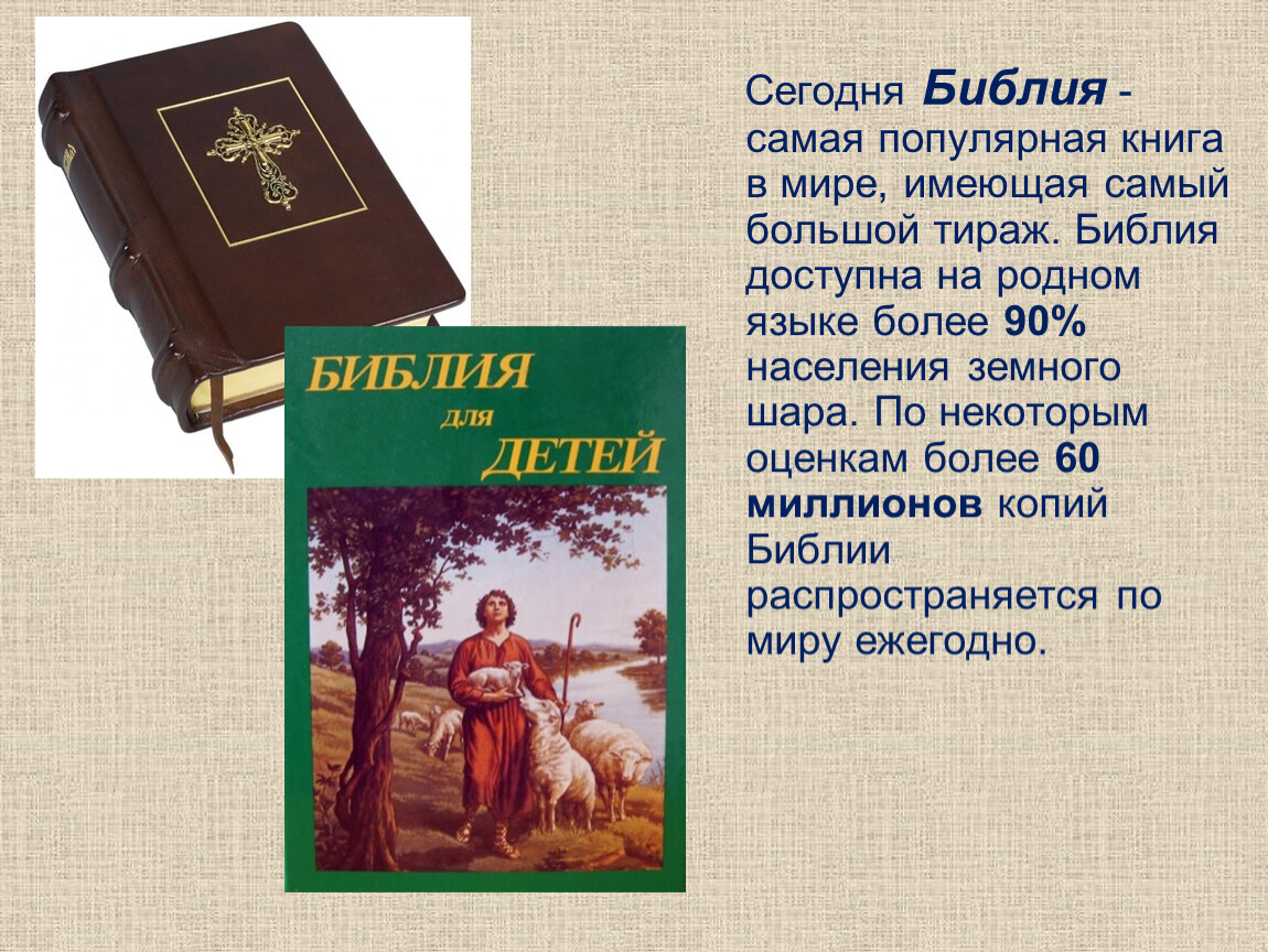 Самый поздний текст Библии написан примерно 2000 лет назад, самому древнему – более 3000 лет.