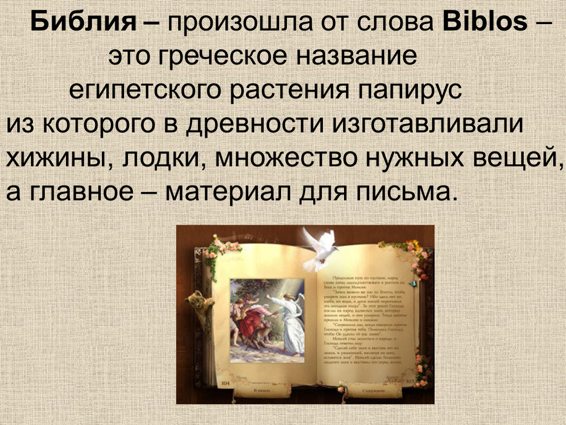 Би́блия (греч. - βιβλία — мн. ч. от βιβλίον — «книга, сочинение») — собрание священных текстов христиан.