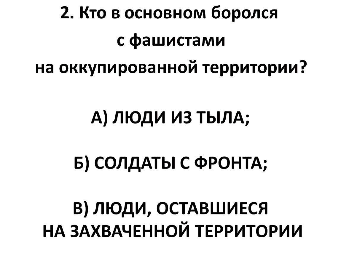 А) люди из тыла;б) солдаты с фронта;в) люди, оставшиеся на захваченной территории