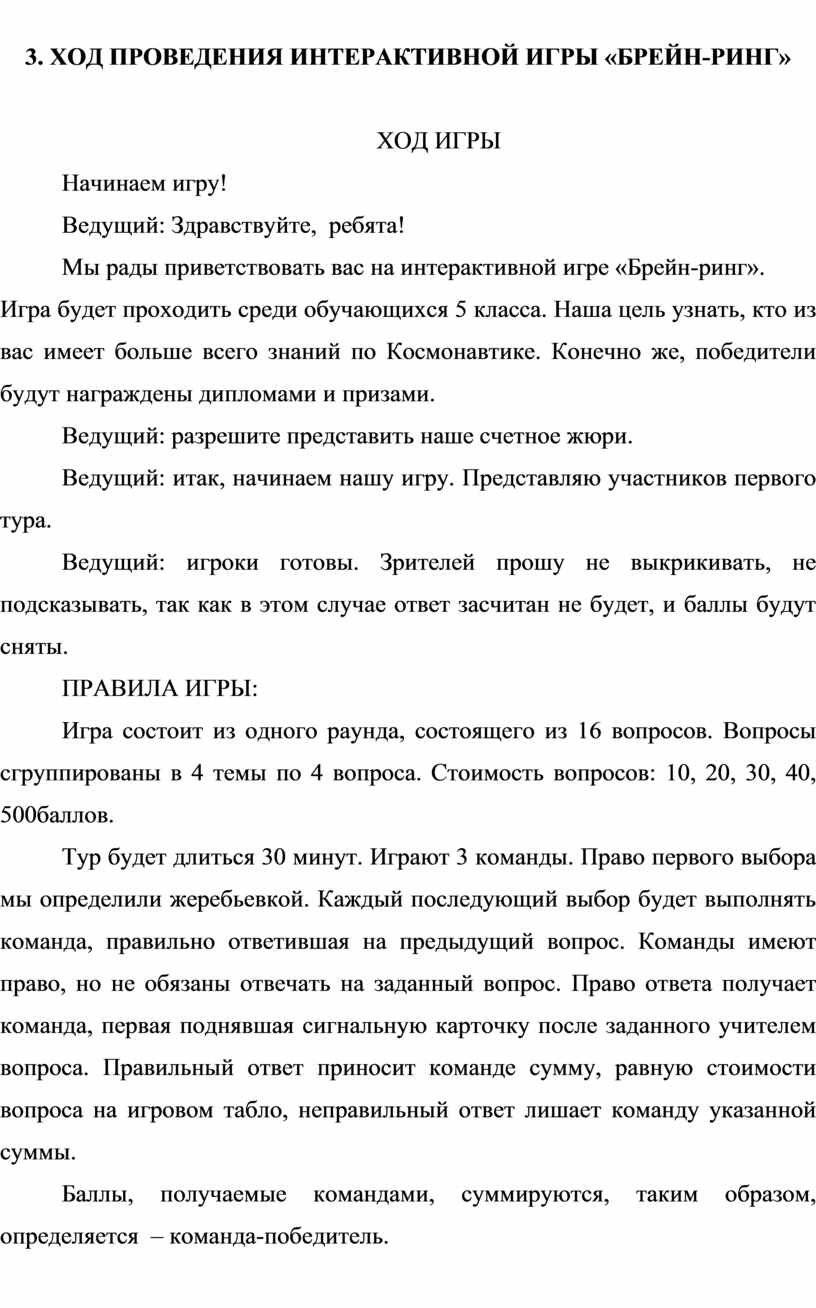 3. ХОД ПРОВЕДЕНИЯ ИНТЕРАКТИВНОЙ ИГРЫ «БРЕЙН-РИНГ»