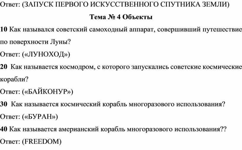 Ответ: («БАЙКОНУР»)