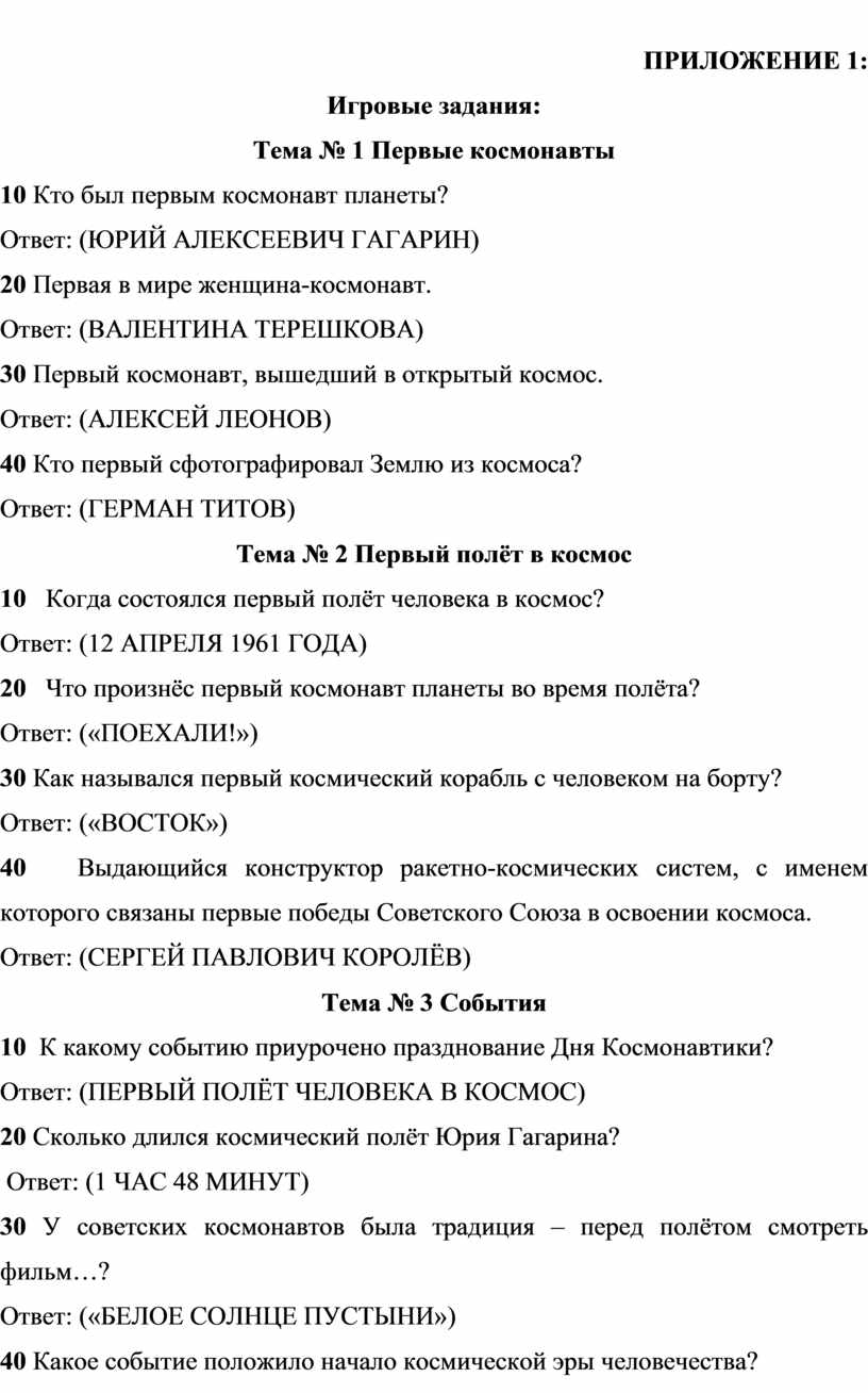 Ответ: (ПЕРВЫЙ ПОЛЁТ ЧЕЛОВЕКА В КОСМОС)