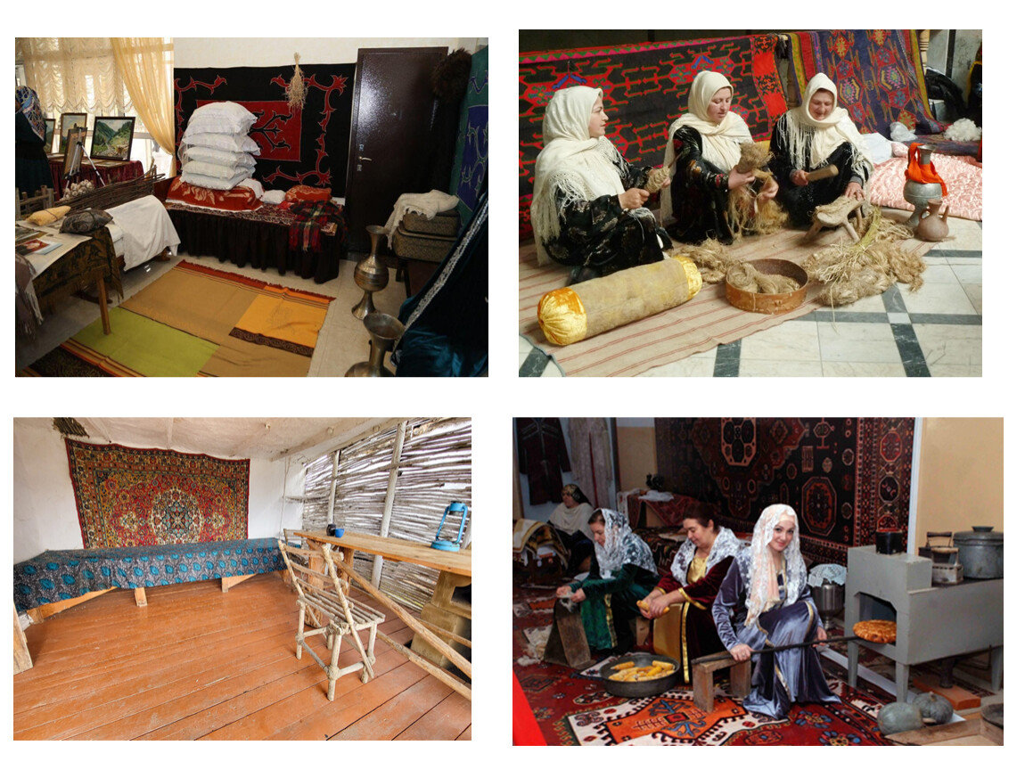 В горах строили сакли — одноэтажные дома из камня, реже — из самана, с плоской крышей. На равнинах строили турлучные дома. Для строительства использовалось дерево, глина и солома. Дом состоял из двух комнат, между которыми располагался узкий проход, имел двухскатную земляную крышу и небольшой навес у входа.