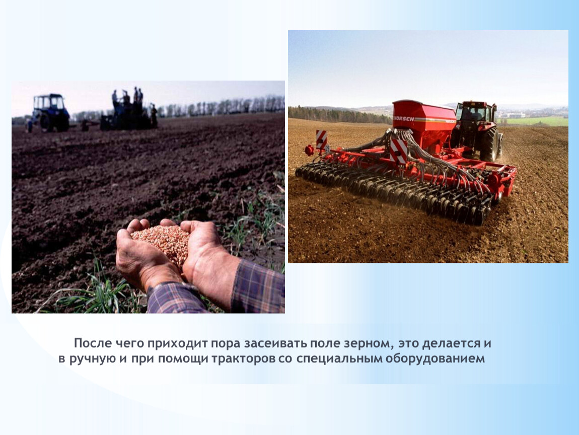 После чего приходит пора засеивать поле зерном, это делается и в ручную и при помощи тракторов со специальным оборудованием