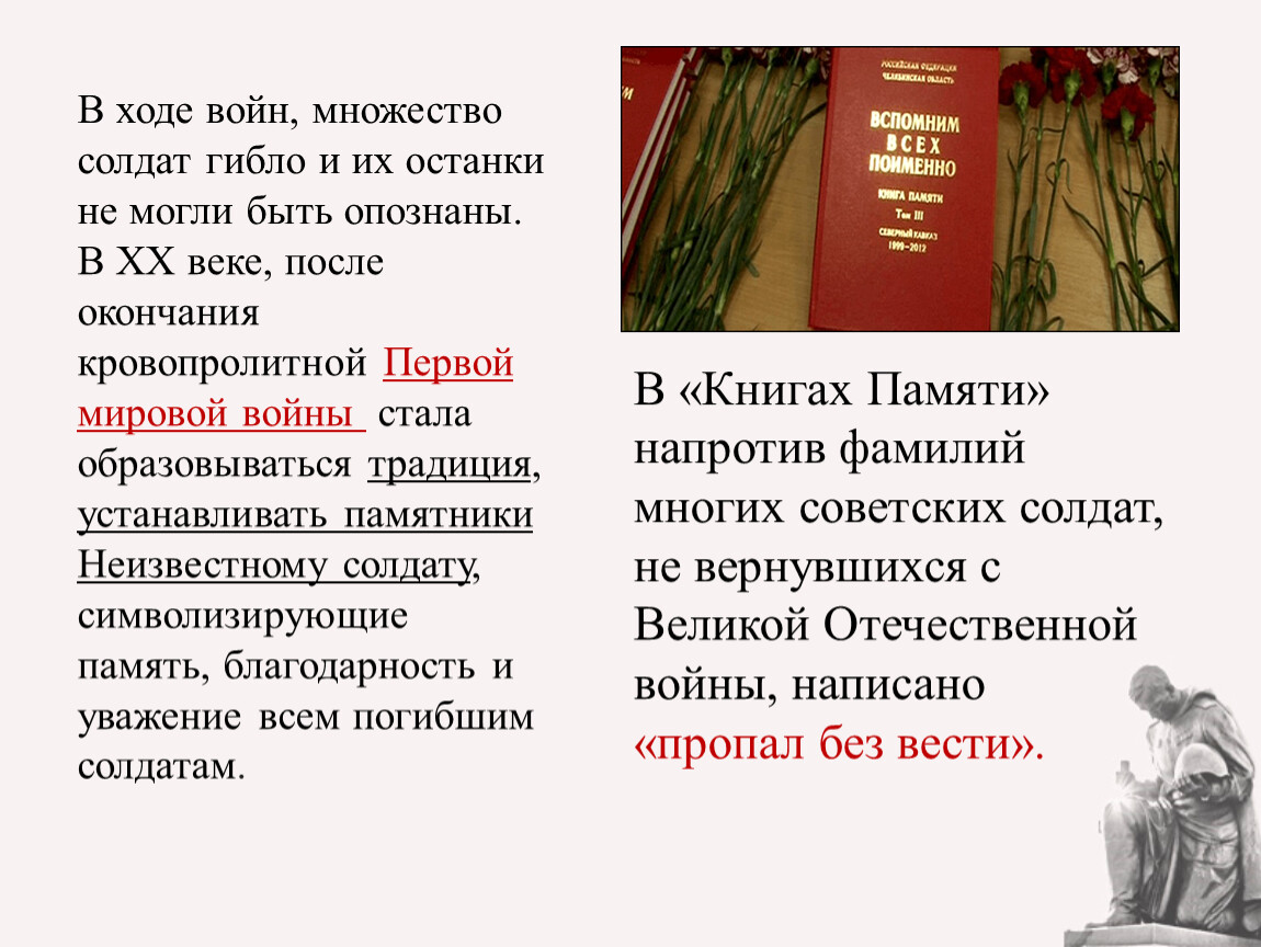 В «Книгах Памяти» напротив фамилий многих советских солдат, не вернувшихся с Великой Отечественной войны, написано