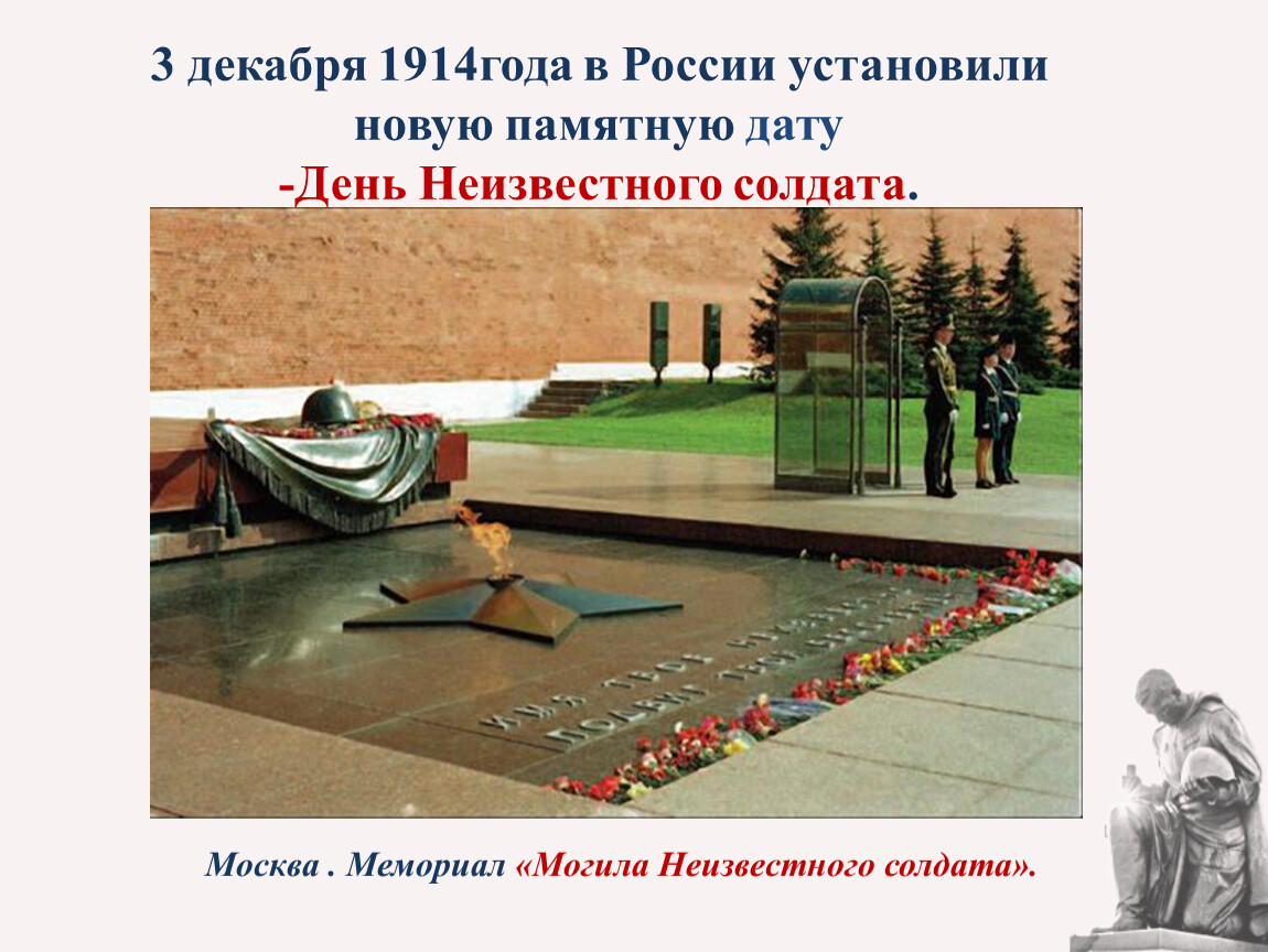 3 декабря 1914года в России установили новую памятную дату-День Неизвестного солдата.