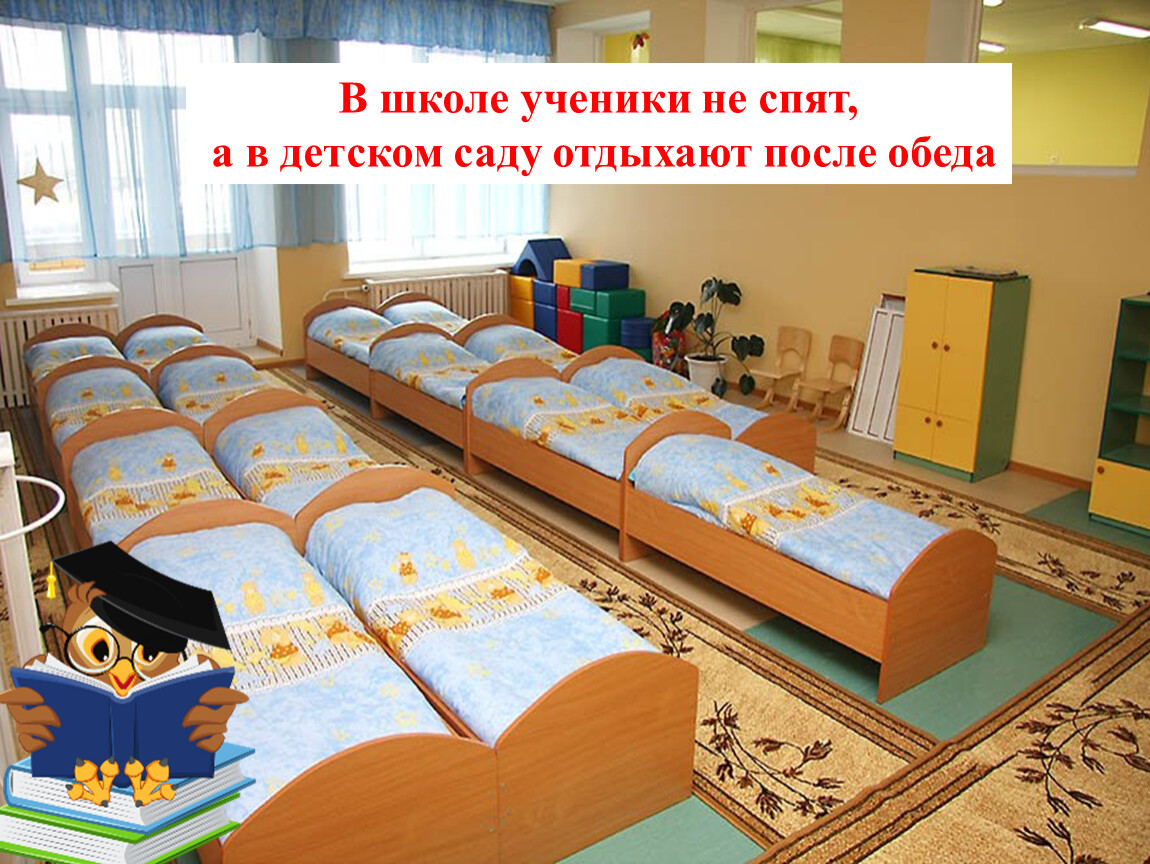 В школе ученики не спят, а в детском саду отдыхают после обеда