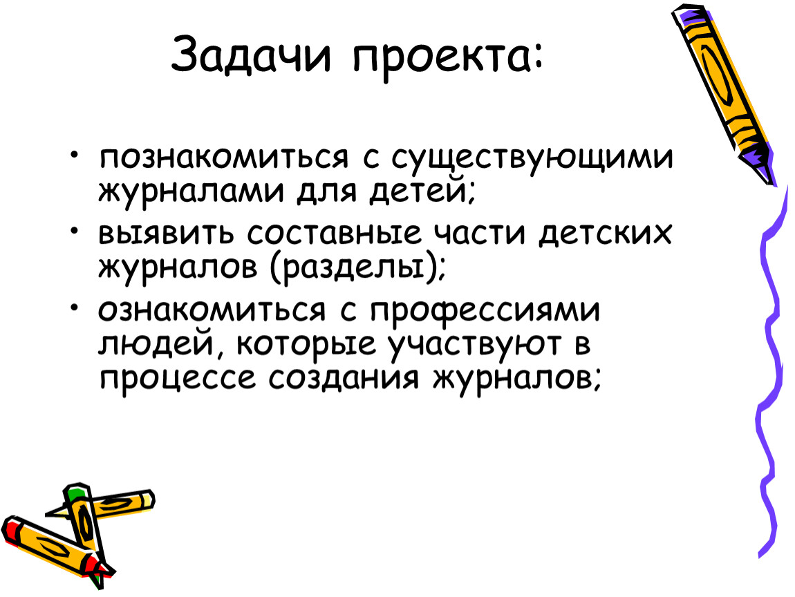 ознакомиться с профессиями людей, которые участвуют в процессе создания журналов;