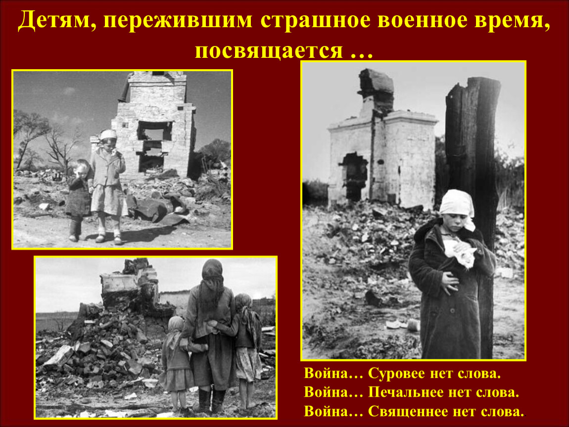 Война… Суровее нет слова.Война… Печальнее нет слова.Война… Священнее нет слова..