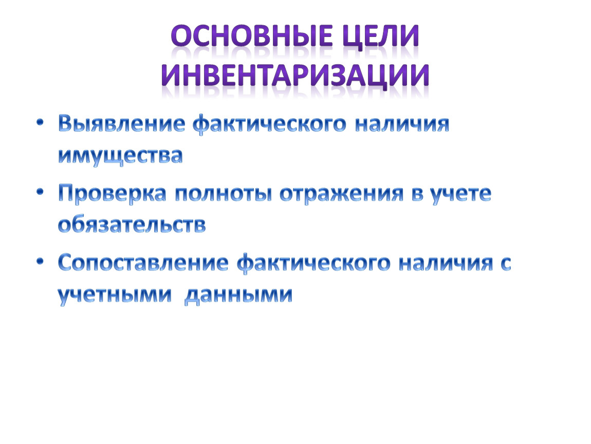 ОСНОВНЫЕ ЦЕЛИ ИНВЕНТАРИЗАЦИИ