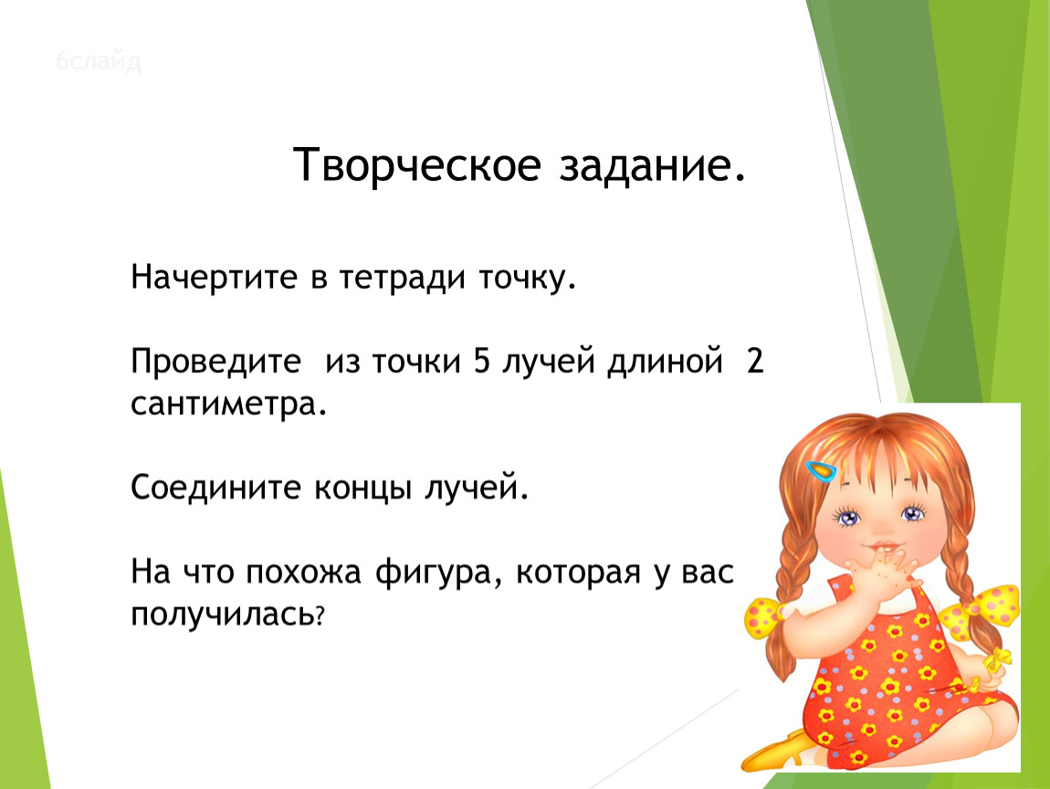 Проведите из точки 5 лучей длиной 2 сантиметра.