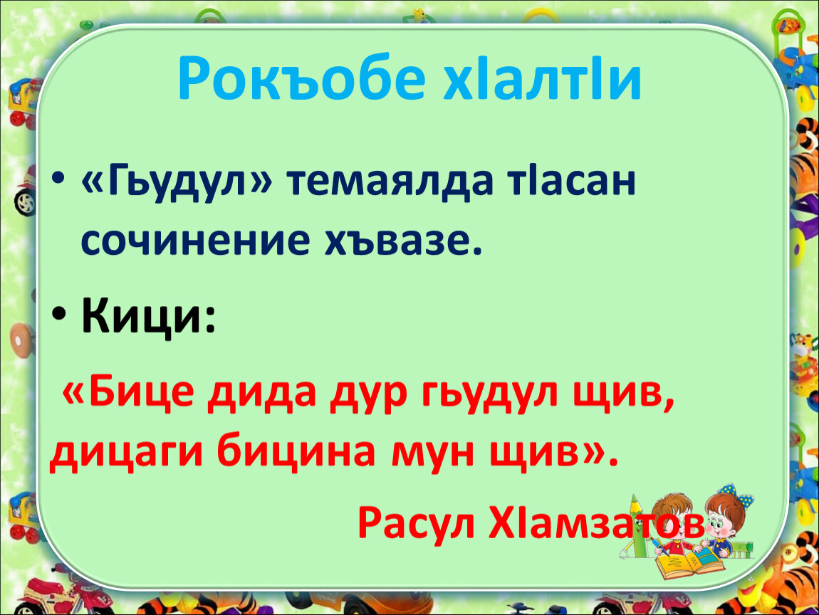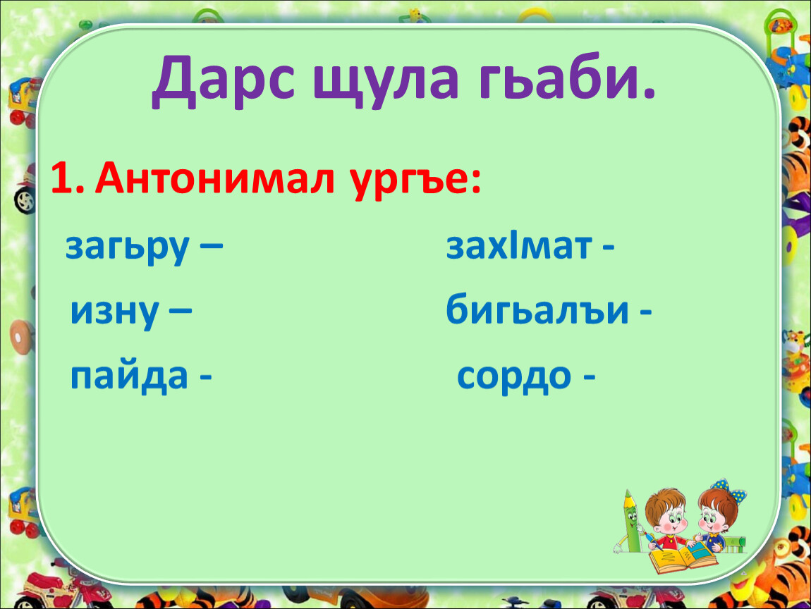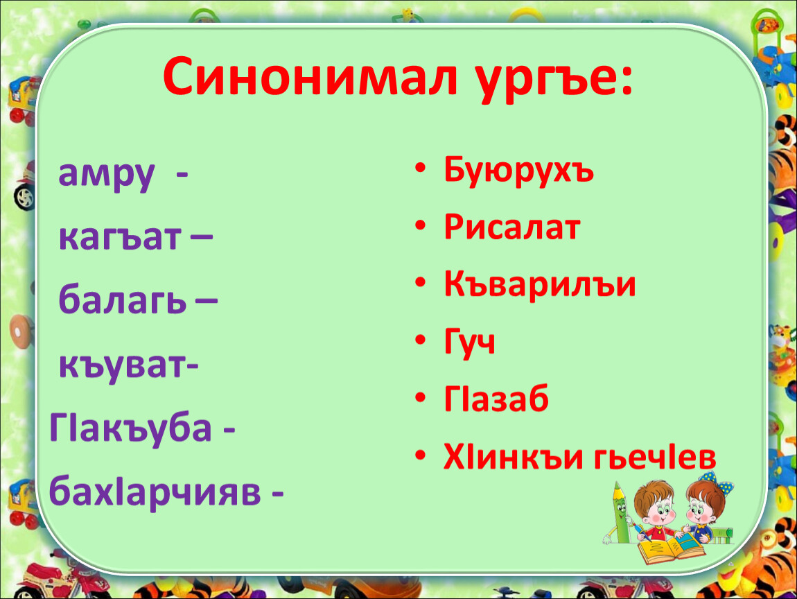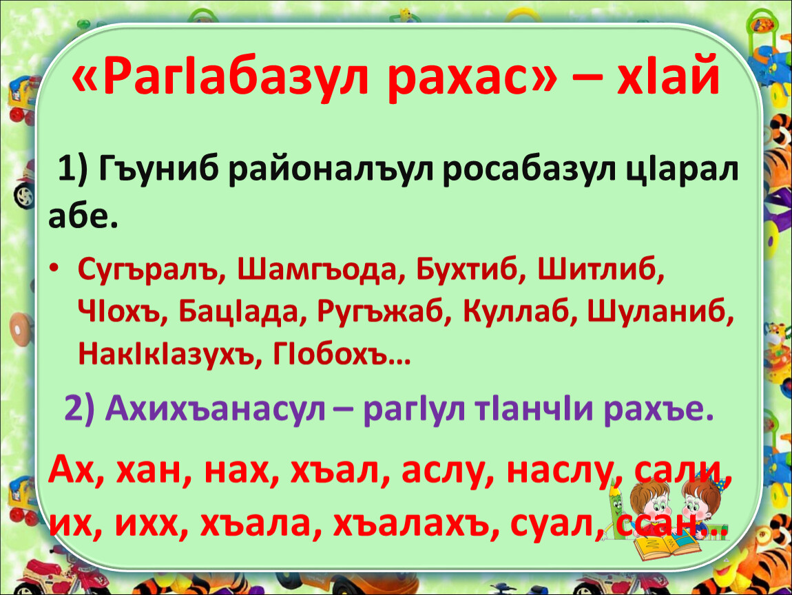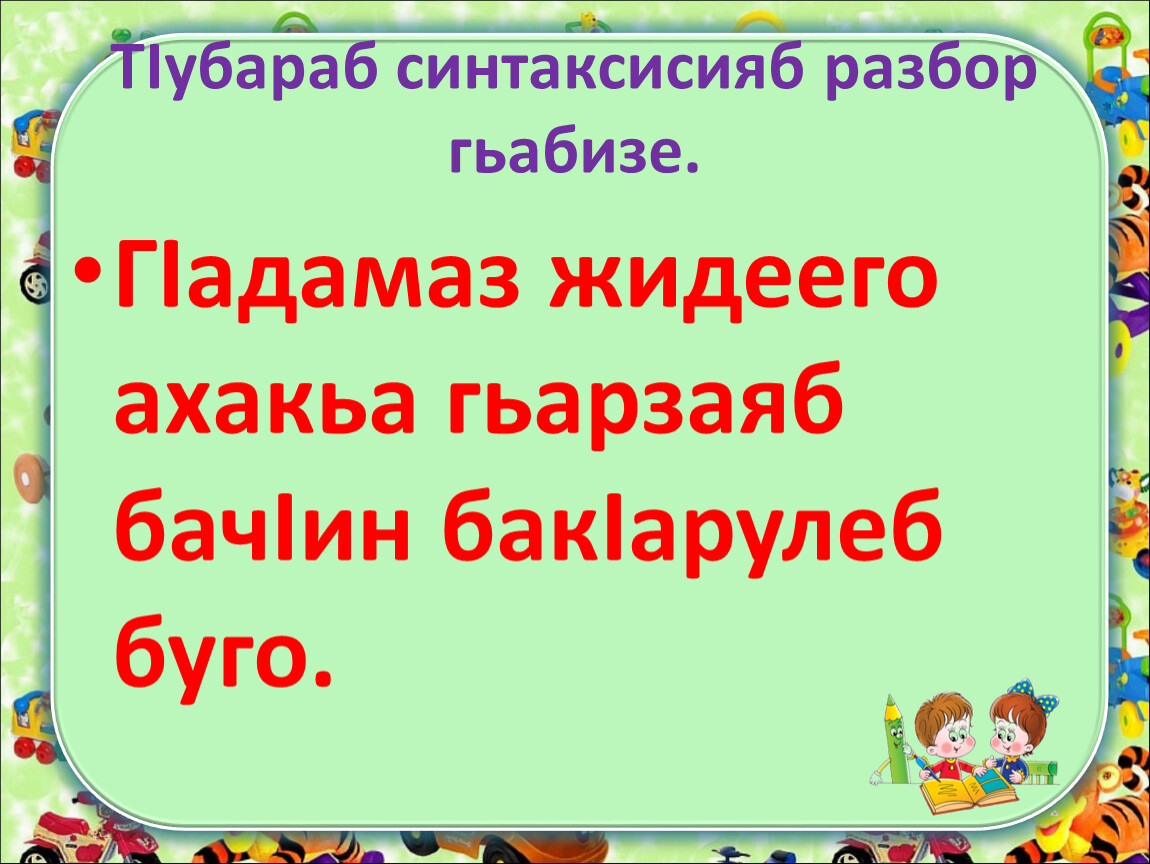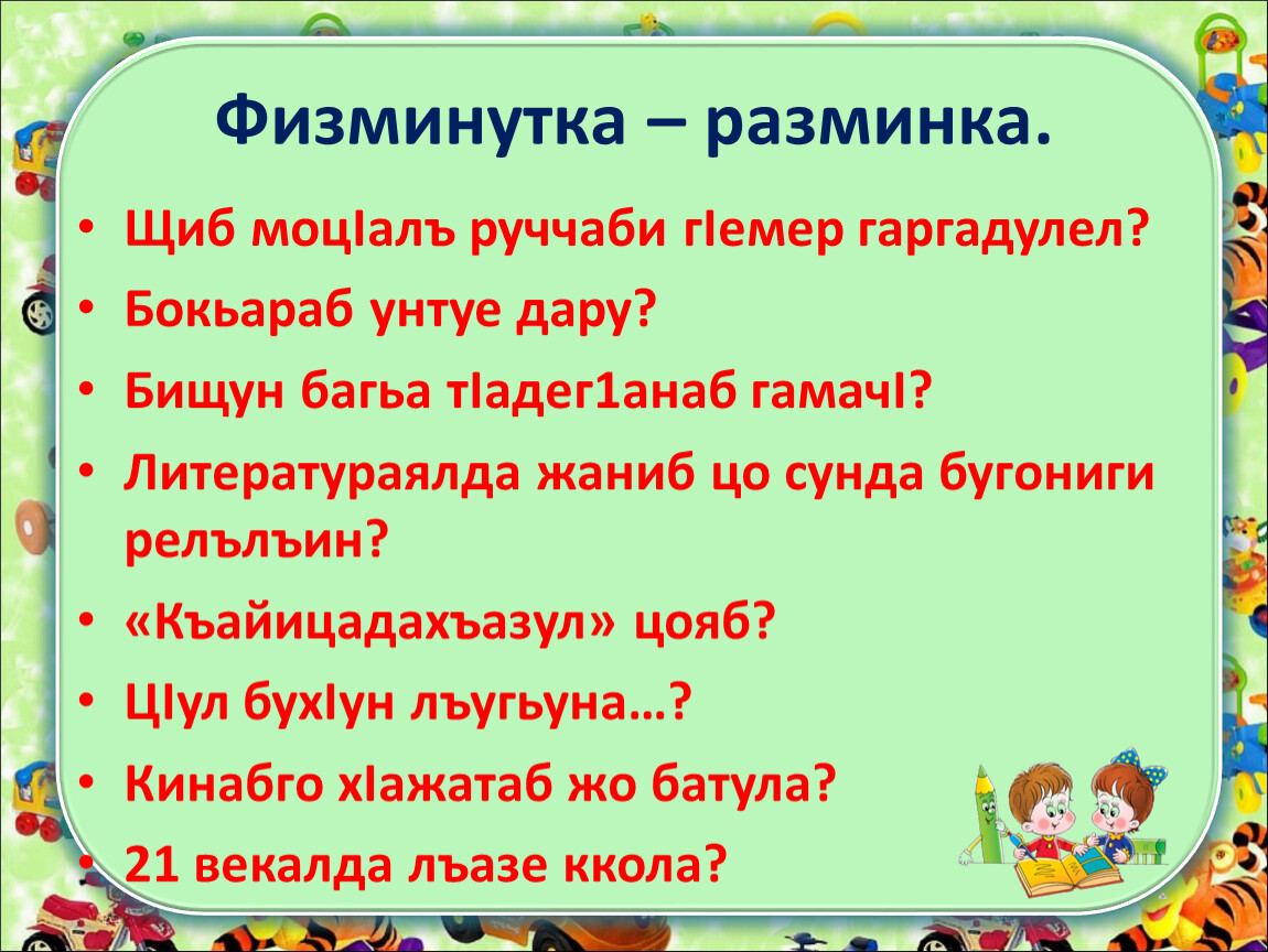 БатIи-батIиял хIалтIабаздалъун лъималазул гIакълу цIубазаби.