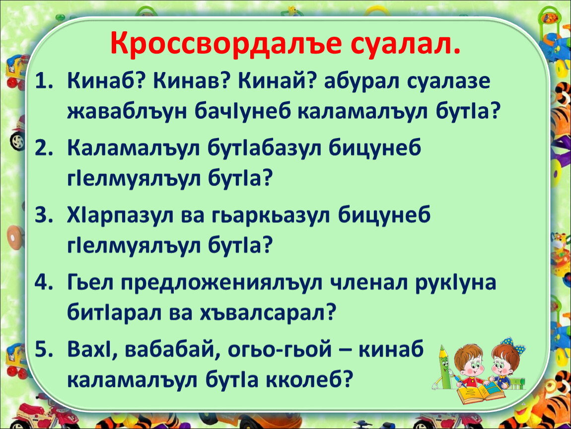 Кинаб? Кинав? Кинай? абурал суалазе жаваблъун бачIунеб каламалъул бутIа?