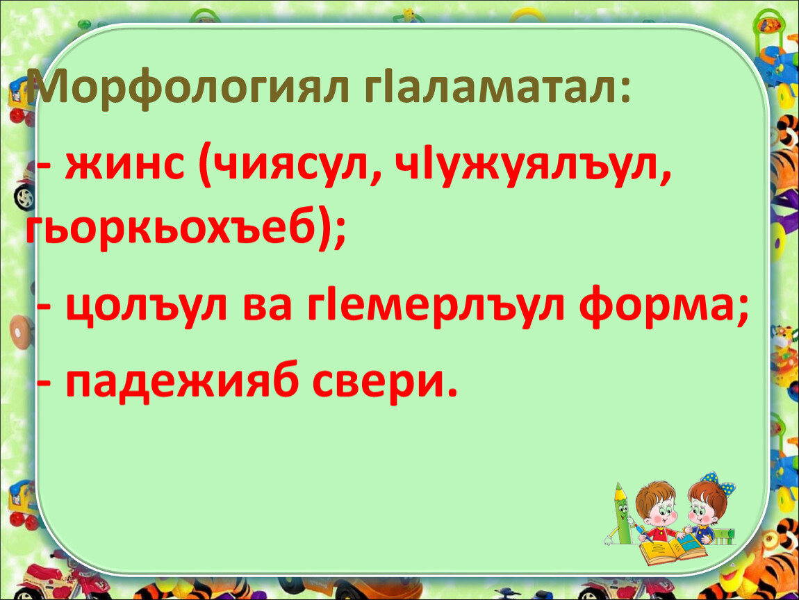 - жинс (чиясул, чIужуялъул, гьоркьохъеб);