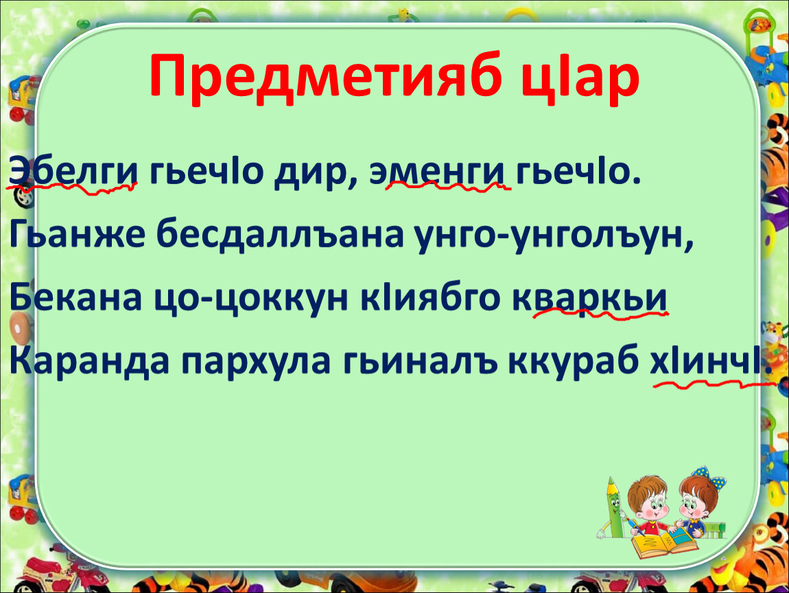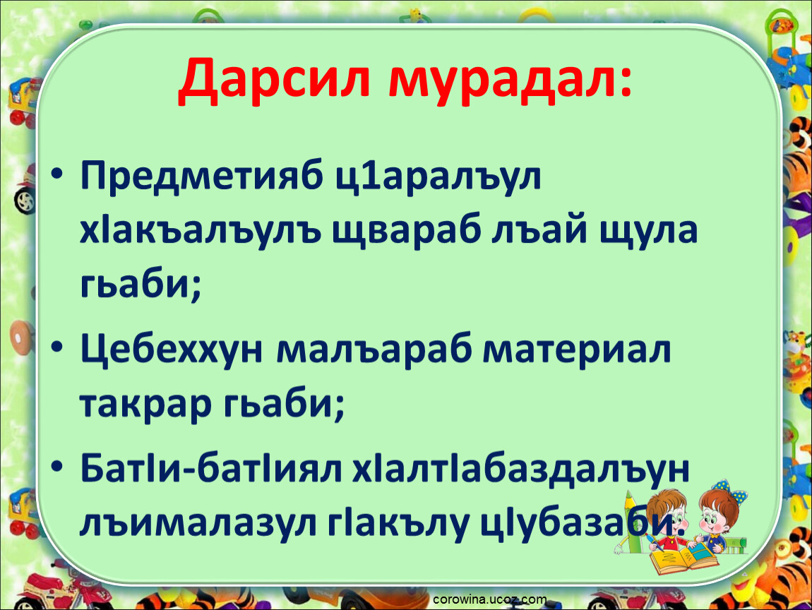 Предметияб ц1аралъул хIакъалъулъ щвараб лъай щула гьаби;