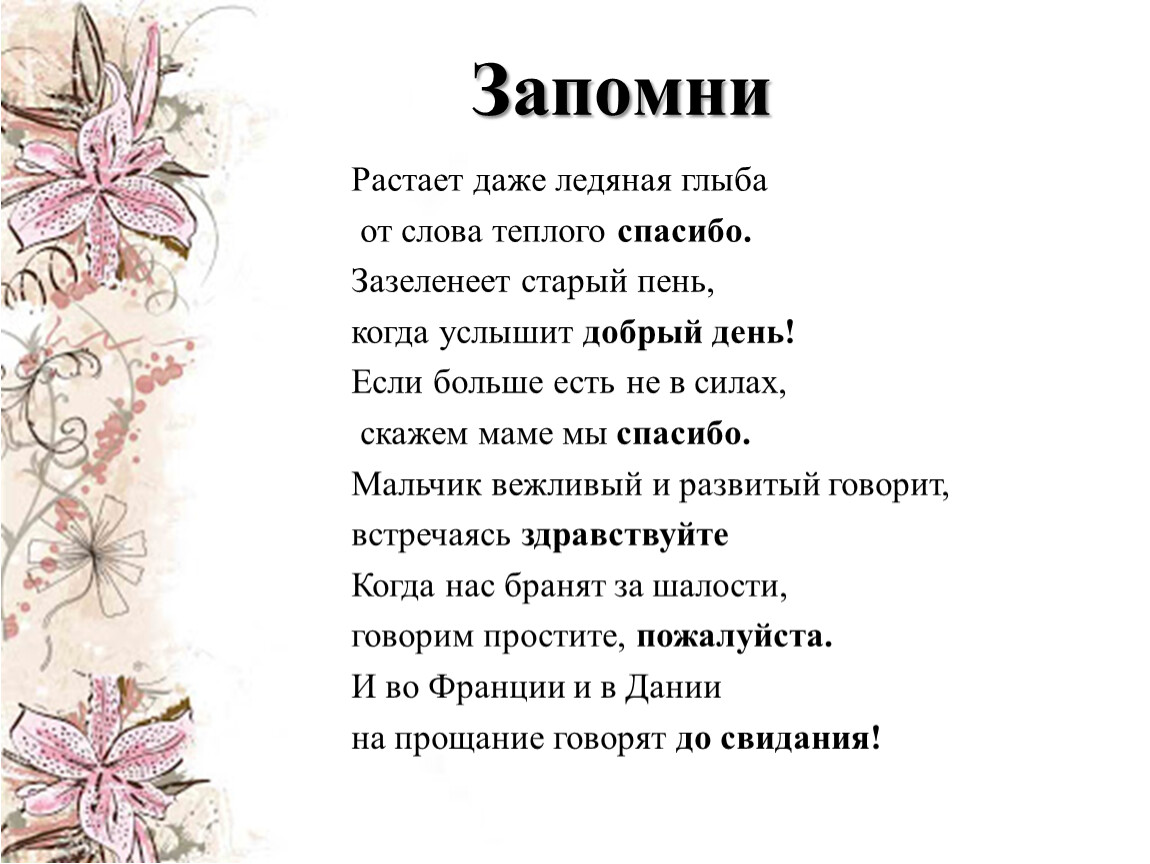 Что бы ты ни делал, ты всегда должен помнить, что живёшь на свете не один. Тебя окружают люди, твои близкие, твои товарищи. Ты должен вести себя так, чтобы им было легко и приятно жить рядом с тобой. Именно в этом и состоит подлинное воспитание и подлинная вежливость.